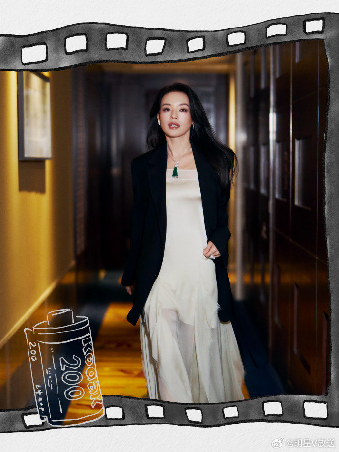 舒淇戴高珠美商在线以导演身份登场的舒淇好美!微博之夜抹胸白裙配黑西装,高珠点缀