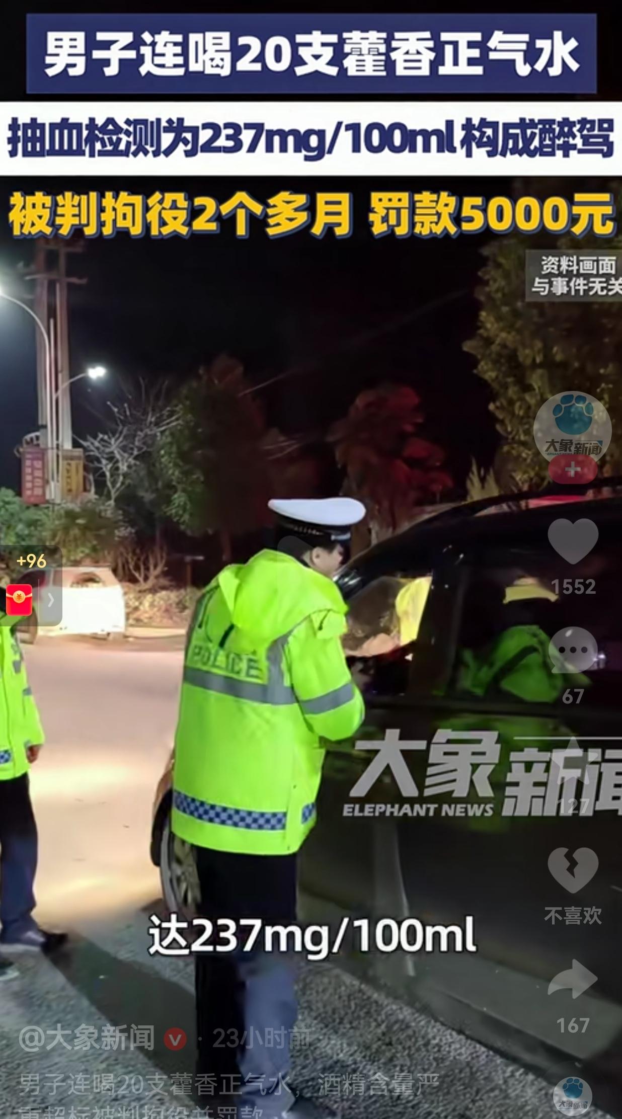 我看完这条新闻,真的是又好气又好笑,还有点后怕。浙江临海的郭师傅,因为长期喝藿香正气水已经喝上瘾了,家人和医生曾经多次劝他,药店工作人员也提醒过,可他就是不听,总觉得“喝了神清气爽”,还心存侥幸。 2025年8月3日,他开车去外地谈业务,在开车之前,他一口气喝了20支。 结果刚开上路就因为酒精上头脑袋昏昏沉沉,由于长时间占道行驶,险些和大货车发生碰撞,最后被群众举报抓了现行。 交警来了之后,血检结果一出来,所有人都惊呆了,他血液里的酒精含量直接飙到237mg/100ml,远超醉驾标准。 最后,法院以危险驾驶罪判处他拘役2个月10天,还罚了5000块钱。 网友看到后评论说:“明知道含酒精还喝了开车,血醇都超两倍多了,这个判决一点都不冤!” 还有的网友说:“藿香正气水的提醒写得明明白白,自己不听劝,后果只能自己担。” 说实话,我特别能理解很多人觉得藿香正气水是“中药”、是“解暑神药”,没把它当回事。可你不知道的是,市面上常见的藿香正气水,酒精含量普遍在40%到50%,比很多白酒度数都高! 20支喝下去,相当于直接灌了小半瓶白酒,不醉才怪。 郭师傅可能到现在都没想通:“我没喝酒啊,怎么就醉驾了?”这恰恰是最让人揪心的地方,很多人对日常药品里的酒精成分毫无概念。 其实,不光是藿香正气水,像止咳糖浆、正骨水、十滴水这些常用药,都含有酒精。喝完这些药别说开车了,就算是做个酒精测试都可能“中招”。 更别提长期滥用像藿香正气水这类药品,对肝脏、肠胃的伤害有多大了。 这件事里,最让我感慨的不是“醉驾被抓”这个结果,而是背后藏着的普遍认知盲区。 我们总觉得“药”就是安全的,却忘了是药三分毒,更忘了有些药里藏着“隐形的酒”。 郭师傅为自己的无知和侥幸付出了代价,但这代价也给我们所有人上了一课:用药前多看一眼说明书:不管是啥药,先看看成分里有没有乙醇(酒精),别拿自己的身体和驾照开玩笑。 对此,你怎么看? (信息来源:大象新闻)