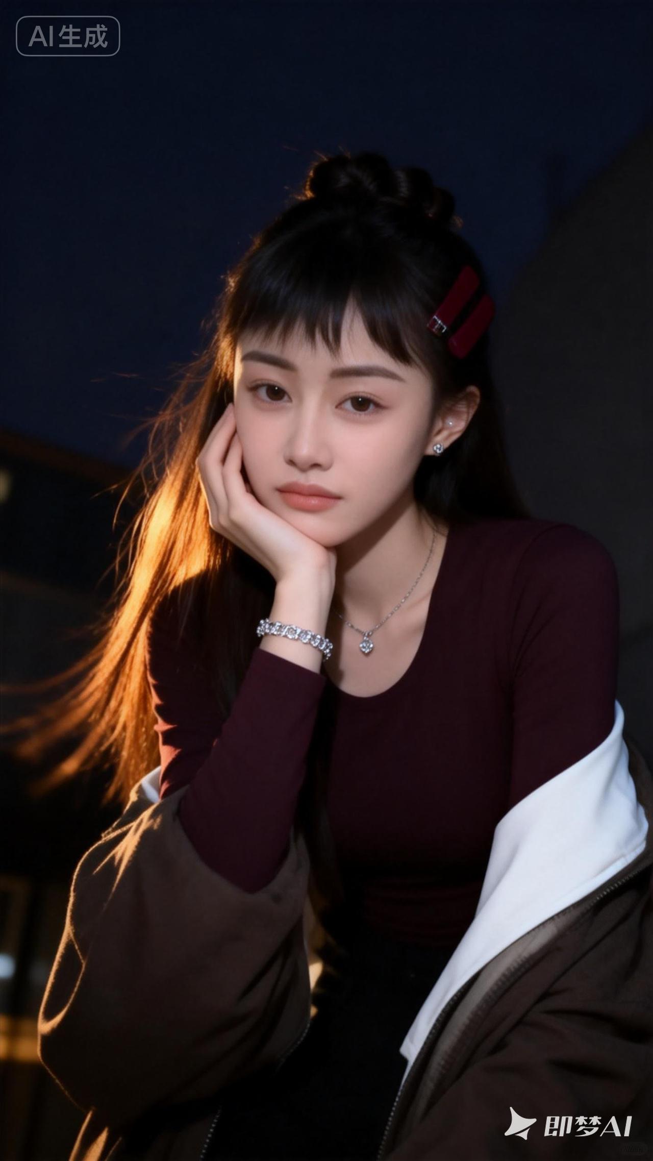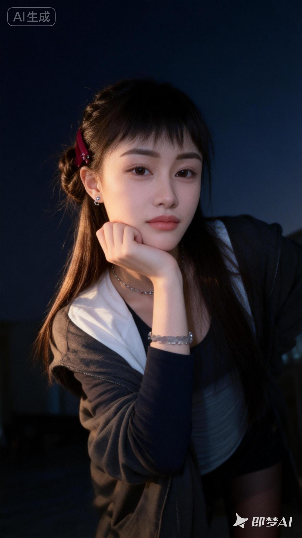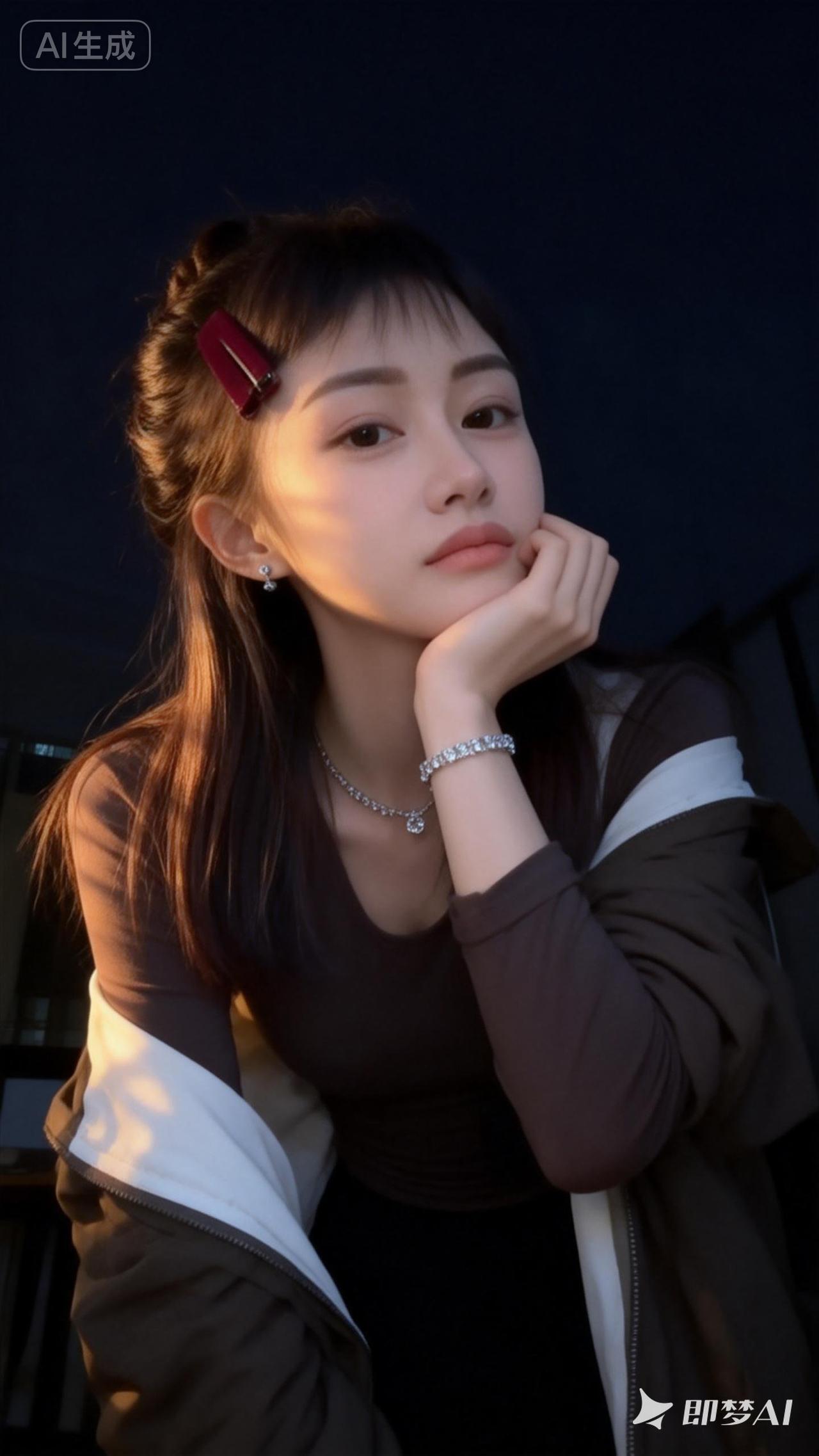 18岁美女,优雅,微笑,发丝柔顺有光泽,长直发,浓眉大眼睛明亮有神,皮肤白皙,长
