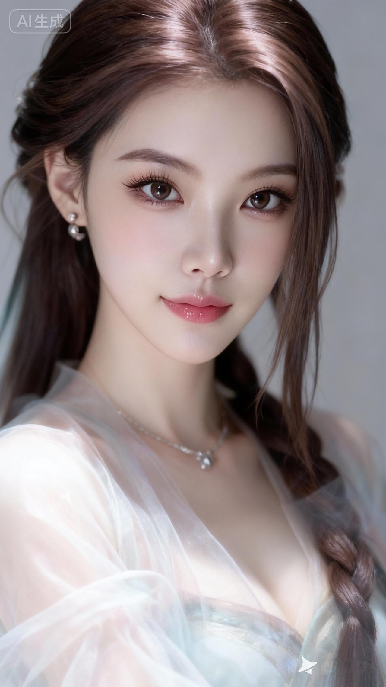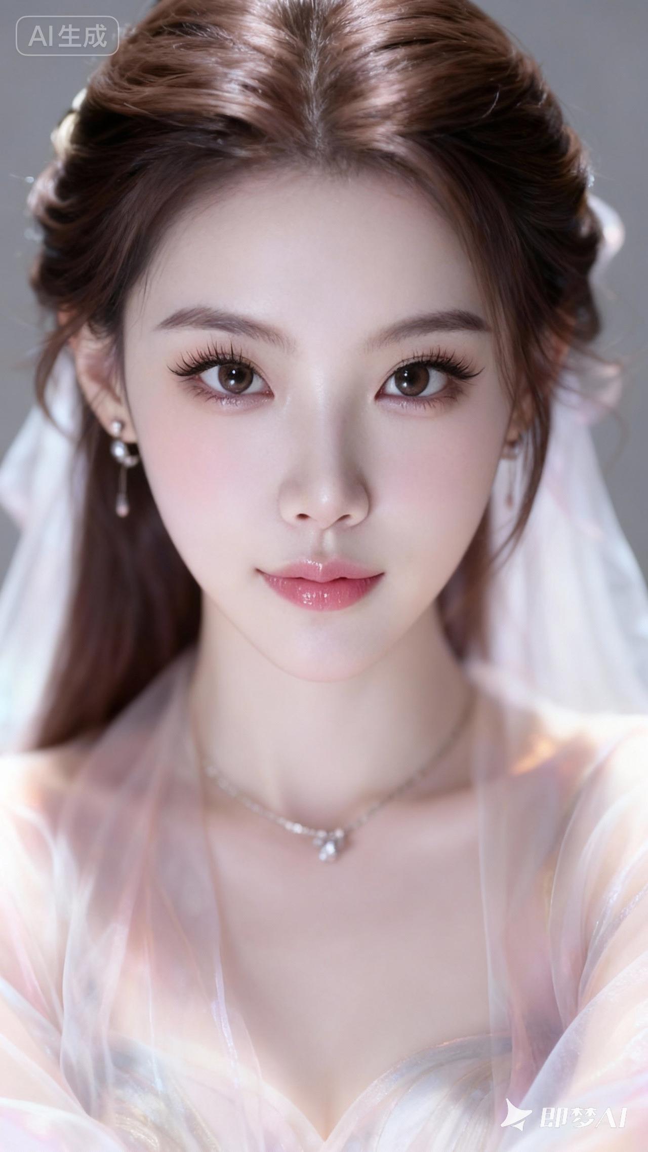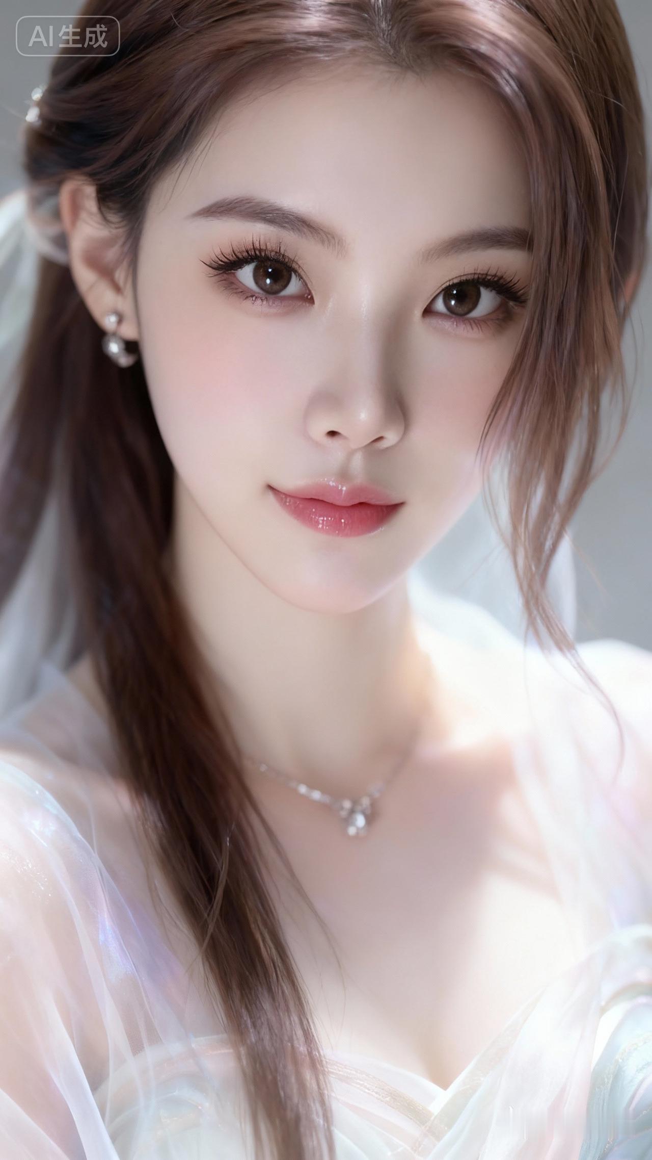 浪漫古风,绝美容貌,棕色长发,深邃丹凤眼,长睫毛,饱满光泽嘴唇,楚楚动人的神态,身着飘逸纱,肌肤如羊脂玉般白皙,暖色调泛光,朦胧梦幻感,脸部特写,唯美