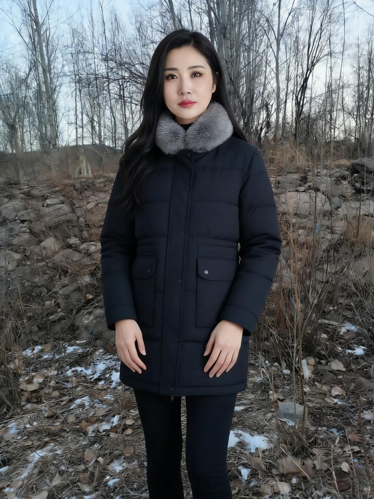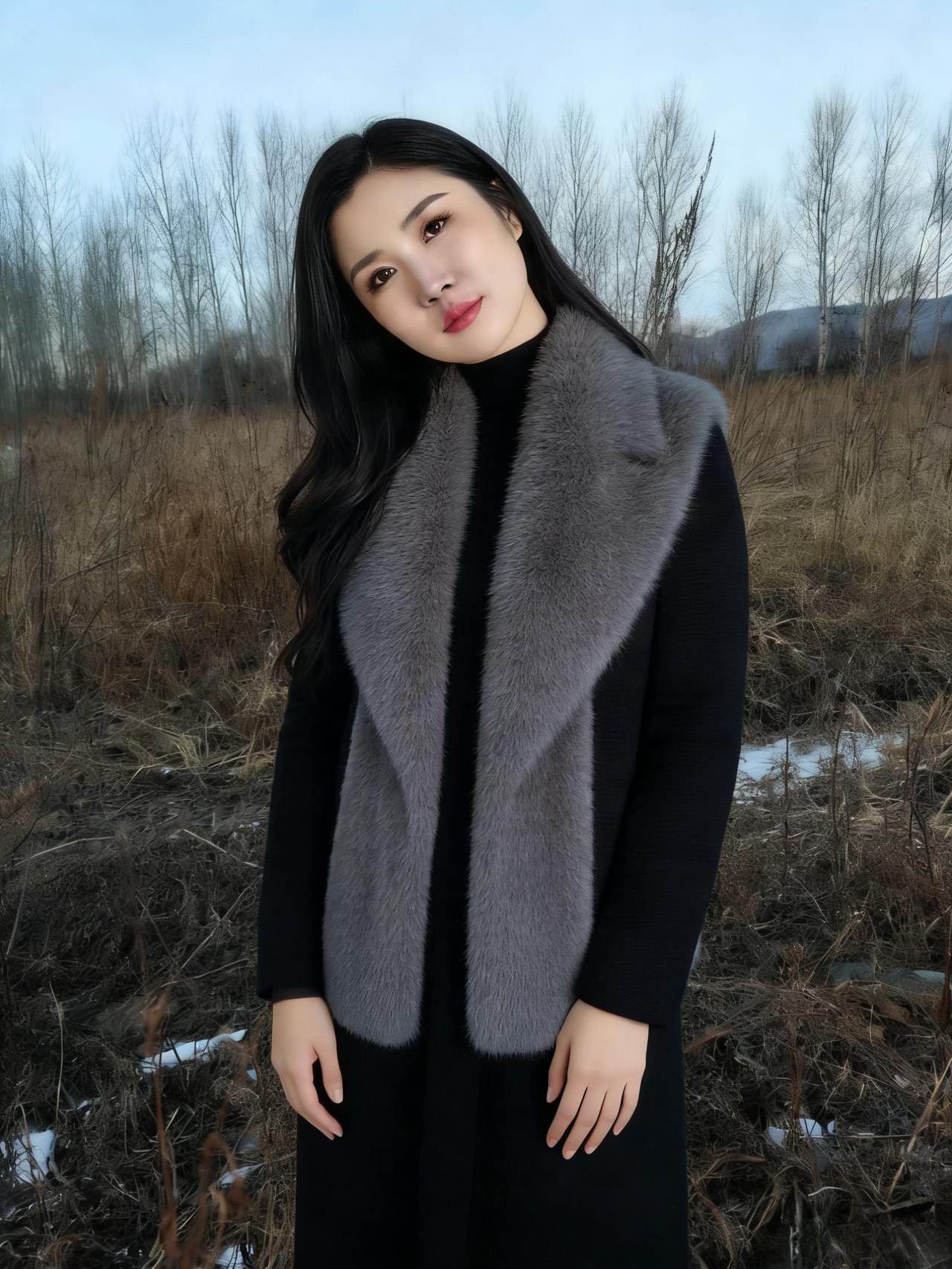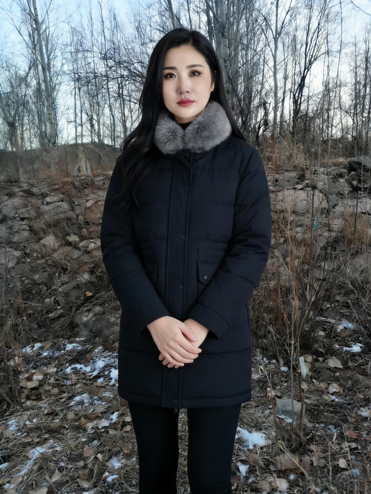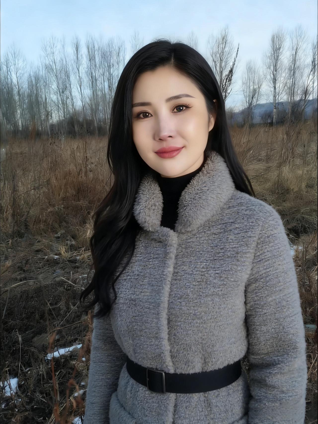 北风把荒草梳成浅金的细浪 你站在残雪旁,像一株移动的白梅 黑大衣的毛领浮着薄霜 目光比冻土更辽阔,比落日更温软 ~ 风穿过发梢时,你拢了拢围巾 指尖轻触皮毛的弧度,像触碰云朵的边缘 远处的树桠举着空寂的蓝 你笑起来,就有细碎的光在睫毛上跳 ~ 影子在枯草丛里铺展,长过了冬的寒 白羽绒服的褶皱里,藏着未融的雪 当你低头系紧袖口,天地便安静下来 只剩呼吸,与旷野的风,轻轻对谈