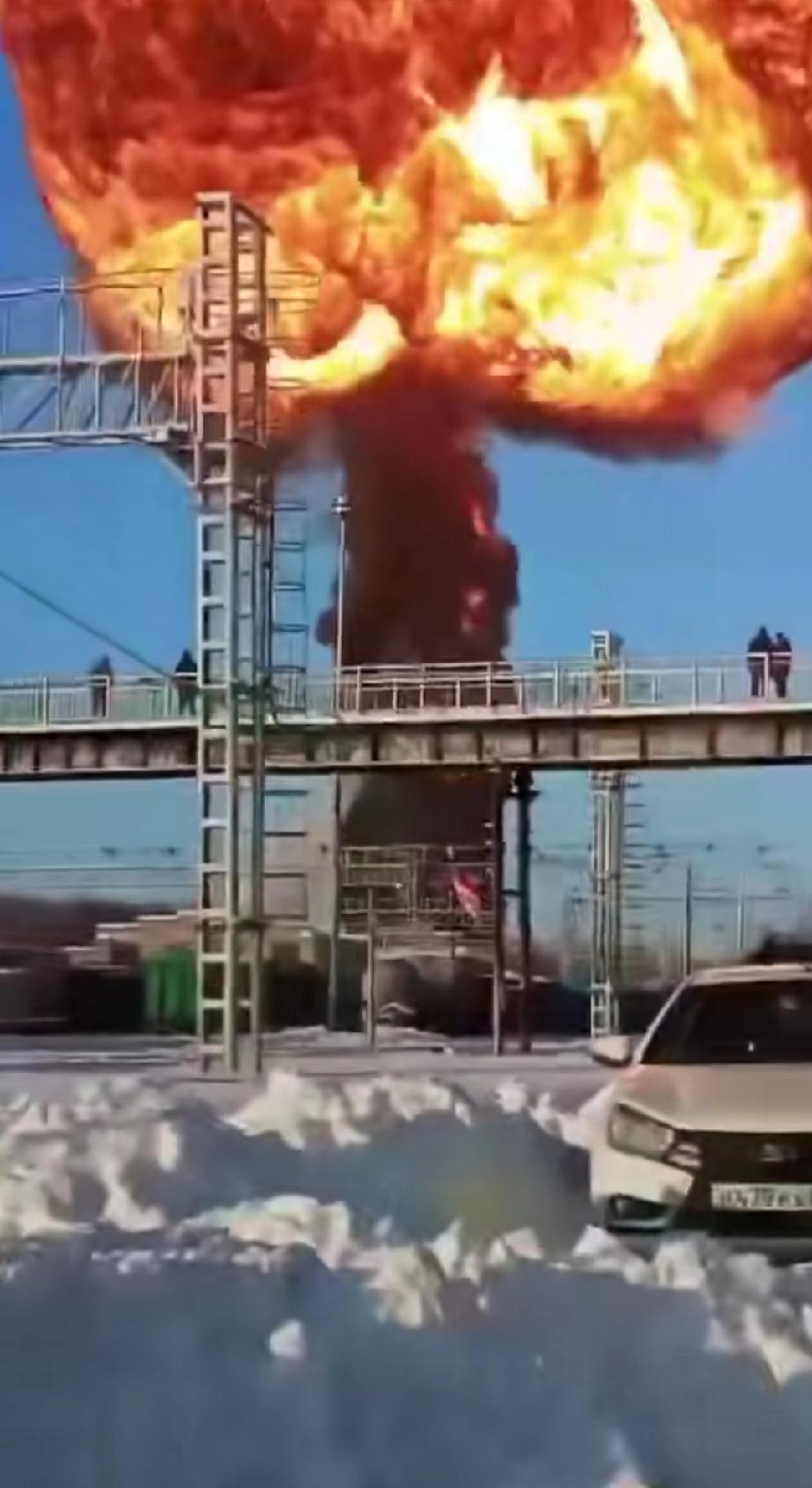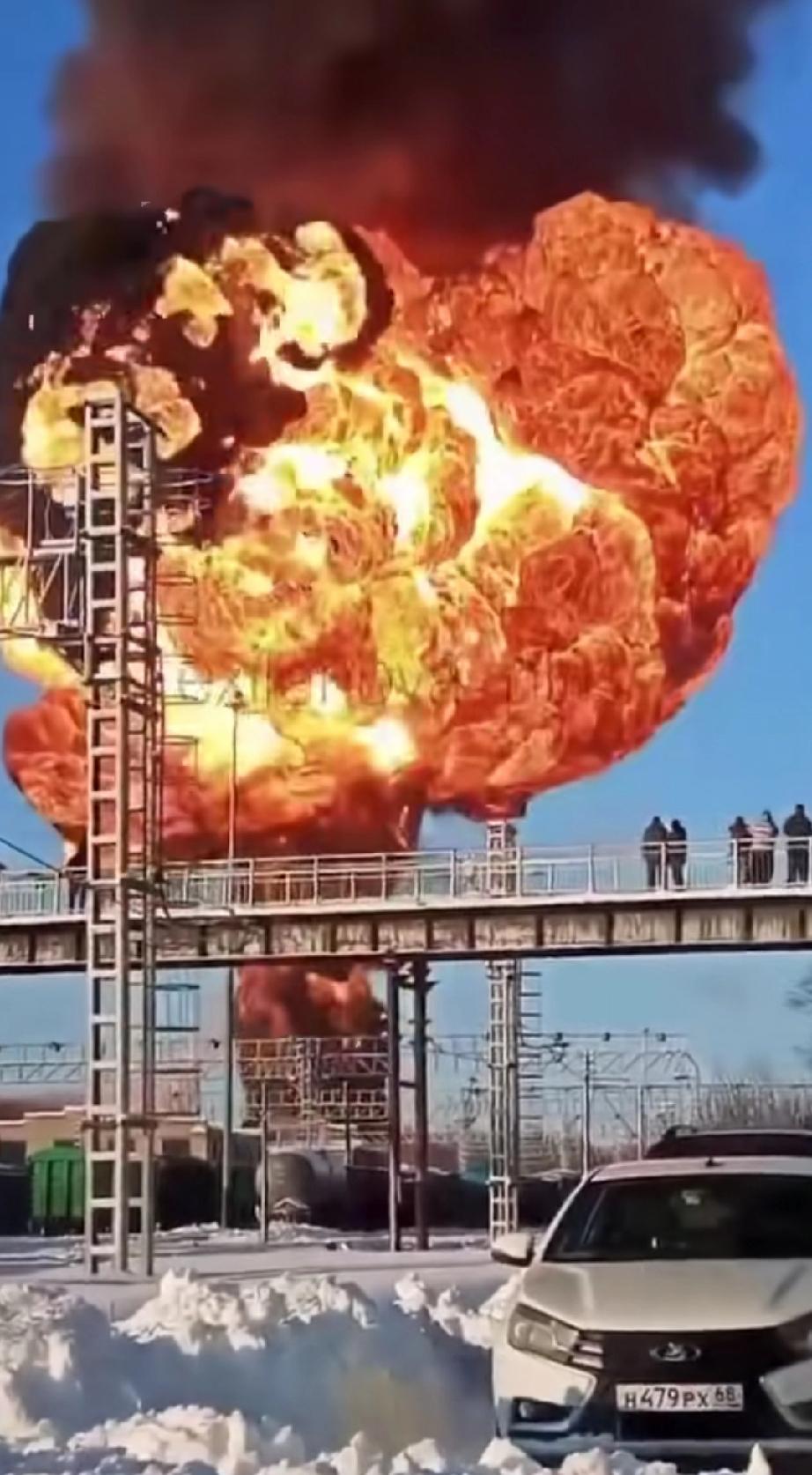 俄罗斯坦波夫州米丘林斯,一列油罐车遇袭爆炸,巨大的火球就像蘑菇云一样,俄罗斯现在也开始过中国农历新年了,讲究的红红火火。