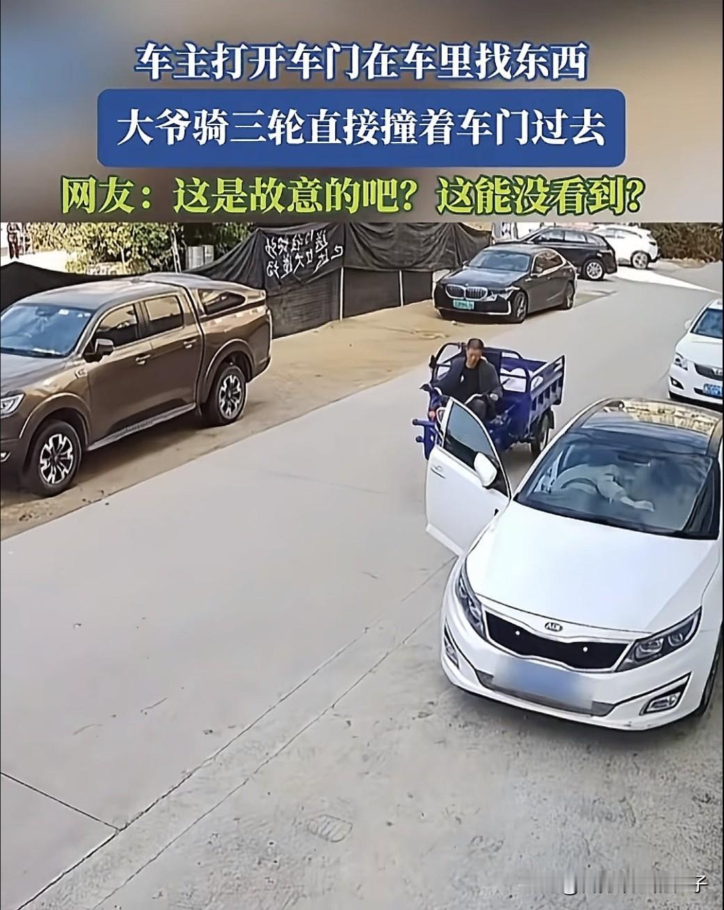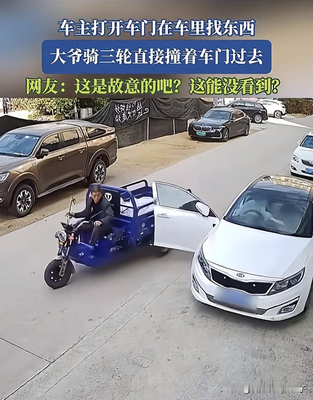 坏人变老了? 女子将车停靠在路边找东西,结果身后一骑三轮车的大爷,也不知是没看清,还是故意的,对着车门就撞了上去。 车门被撞报废,大爷也没钱赔,最后女子也只能自认倒霉,自己掏钱修车,就当花钱买个教训! 有网友说,大爷明显就是故意的,撞上前,他还盯着看了好几秒,感觉就像是特意瞄准的。 不过,我倒觉得不一定是故意的,大爷可能是想凑近点,看车里人在干啥,结果不看路,没把握和小车的距离,才撞上的。 而且看大爷的三轮车比较新,可能没骑过几次,不太熟悉,您觉得呢?