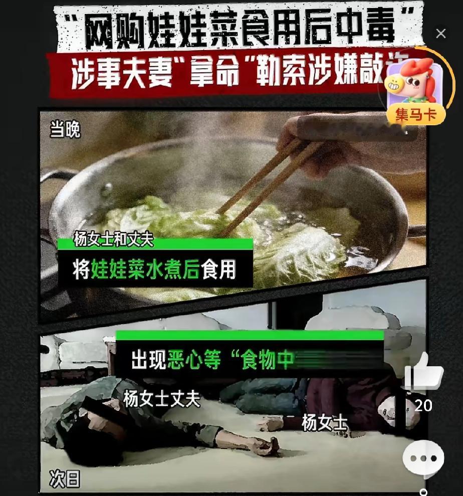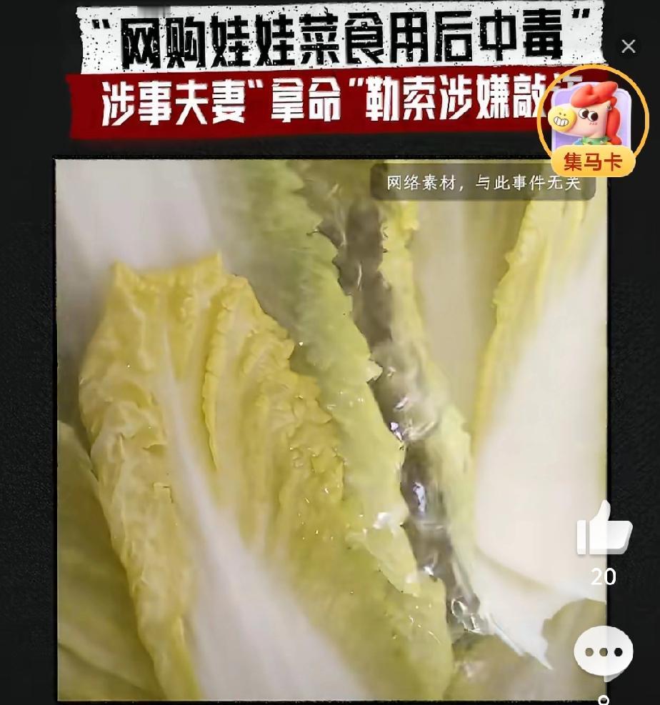 这么狠的角色!没想到,事情反转再反转,最终的结果竟然受害者原来是做局者,为了一点点蝇头小利,夫妻俩不惜以身试毒。 最近,上热搜的网购毒娃娃菜的事情,使大家没有想到的是,经过公安人员的一再侦查,发现原本认为是卖家使用药老鼠的报纸包了娃娃菜,致使网购者夫妻中毒。 后来怀疑是老公投毒,毒害妻子。但是又深度求证,根据夫妻二人的口供不一致,以及从他们家发现了含毒药品,最终发现是夫妻用溴鼠灵下毒,制造中毒假象,目的只为向商家平台勒索巨额赔款。 据说,这是一对二婚夫妻,平时给人感觉还算比较老实,没想到,竟然想着用这种下三滥的手段坑钱,也算是一对狠人!这么折腾下来,不但没有骗到钱,还差点搭上小命。 网上有人说,这都是平台仅退款给惯的,老实人都想变着法子冷商家,看来是有空子可钻。 还有人说,既然有这狠心,用什么法子不能搞钱,投机取巧,偷鸡不成蚀把米,命差点没了!怨谁? 记录我的2026 图片来自网络侵删