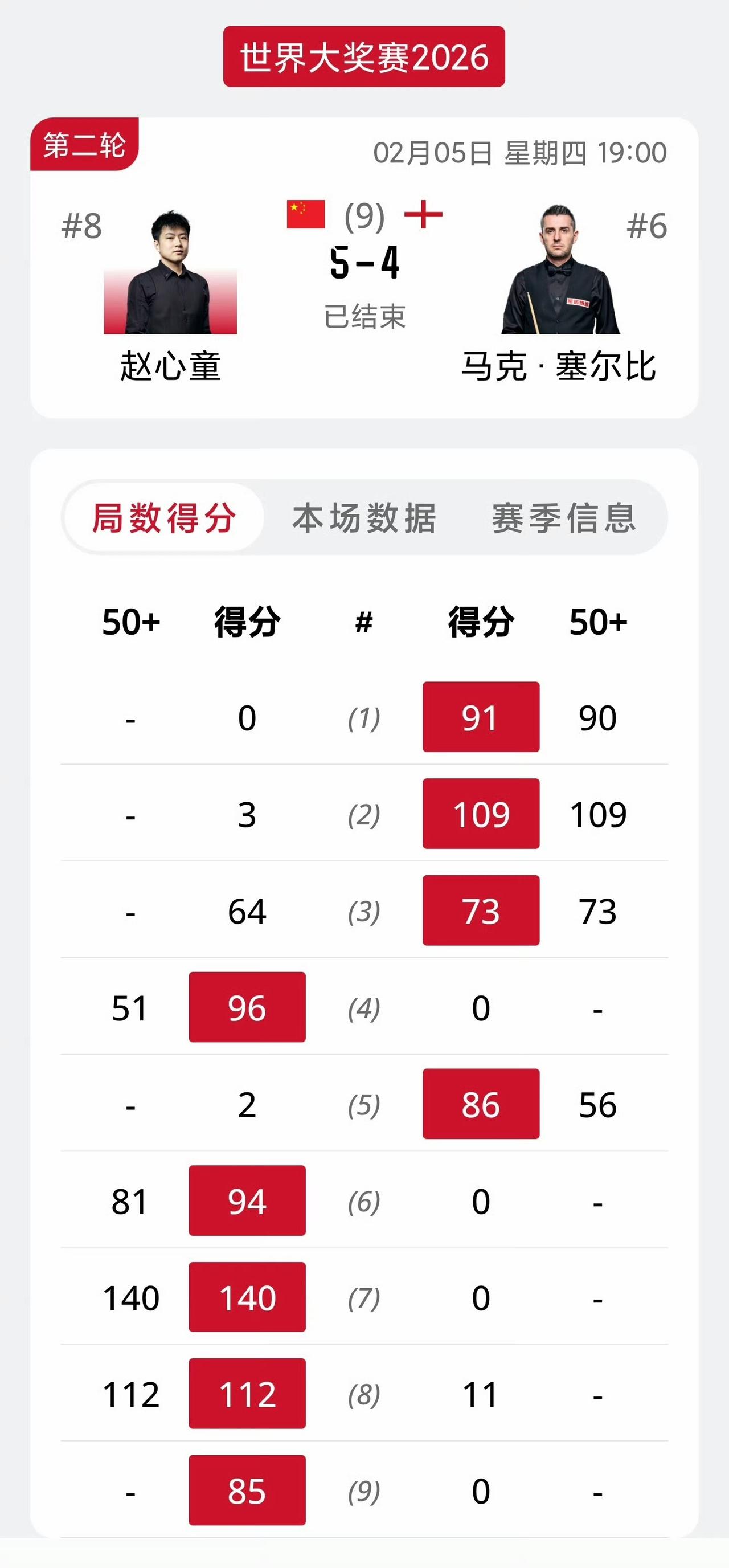 当美女执裁比赛,奥沙利文赢得比赛的几率高达90%,同样今天的赵公子有如神助,1-4落后塞尔比,连胜四局上演惊天大逆转。 加上周跃龙晋级和吴宜泽常冰玉这场德比,世界大奖赛八强基本确定有6名中国球员。 赵心童还需要一场胜利才有希望参加球员锦标赛。