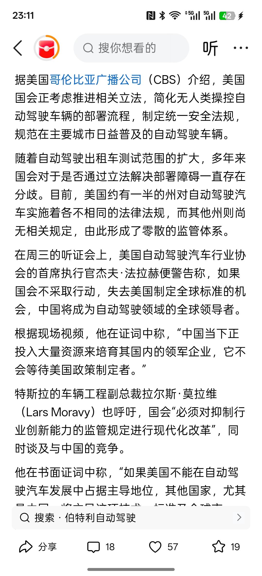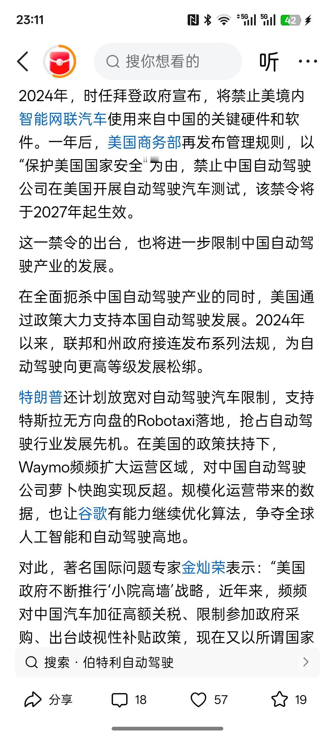 美国怎么突然就反应过来,?“如果美国不引领自动驾驶技术发展,全球标准都让中国制定