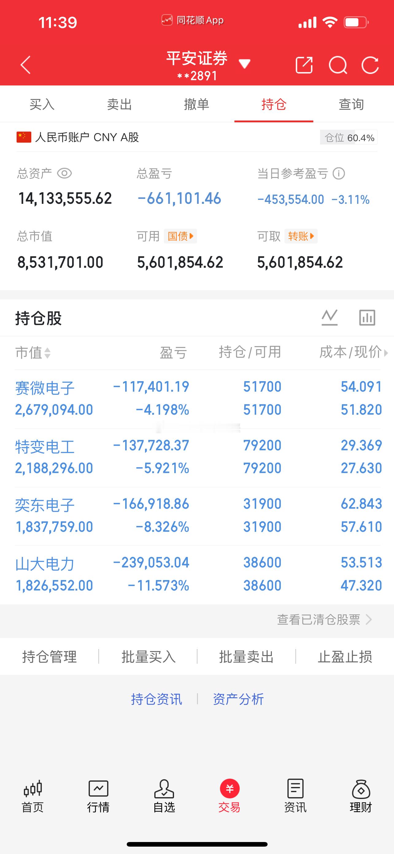 女侠今天也选择了按兵不动,手里的四只票——赛微电子、特变电工、奕东电子、山大电力,清一色翻绿,账户也跟着回撤了一波。看着绿油油的持仓,反而更印证了咱们“见好就收”的短线模式有多正确。毕竟A股里能一直涨的票凤毛麟角,落袋为安才是王道。