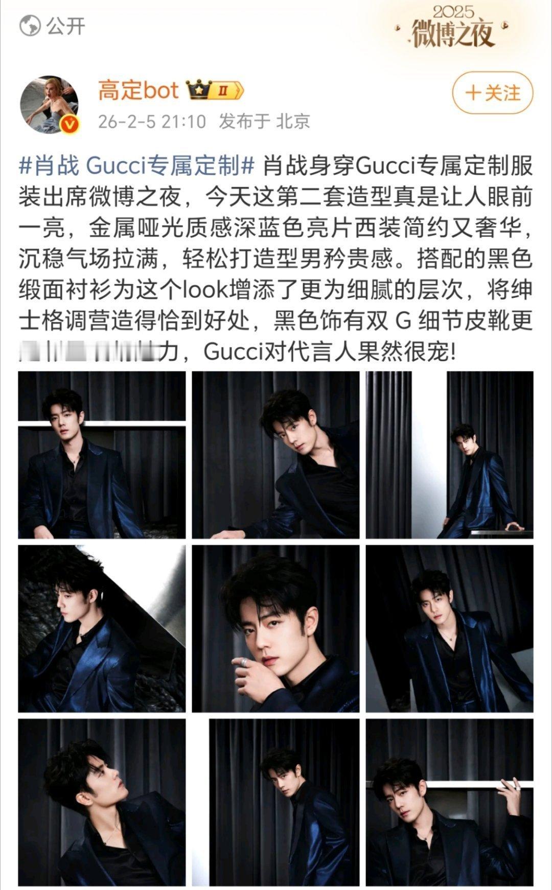 肖战第二套Gucci专属定制,这套矜贵但骚气满满,好看好看微博之夜