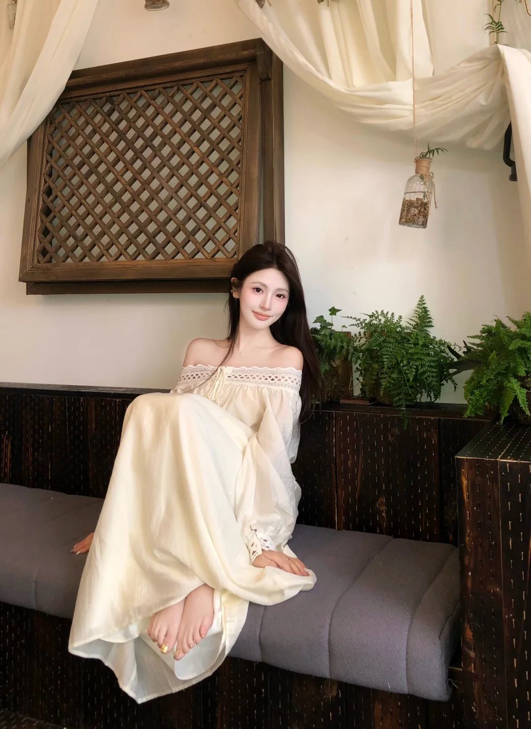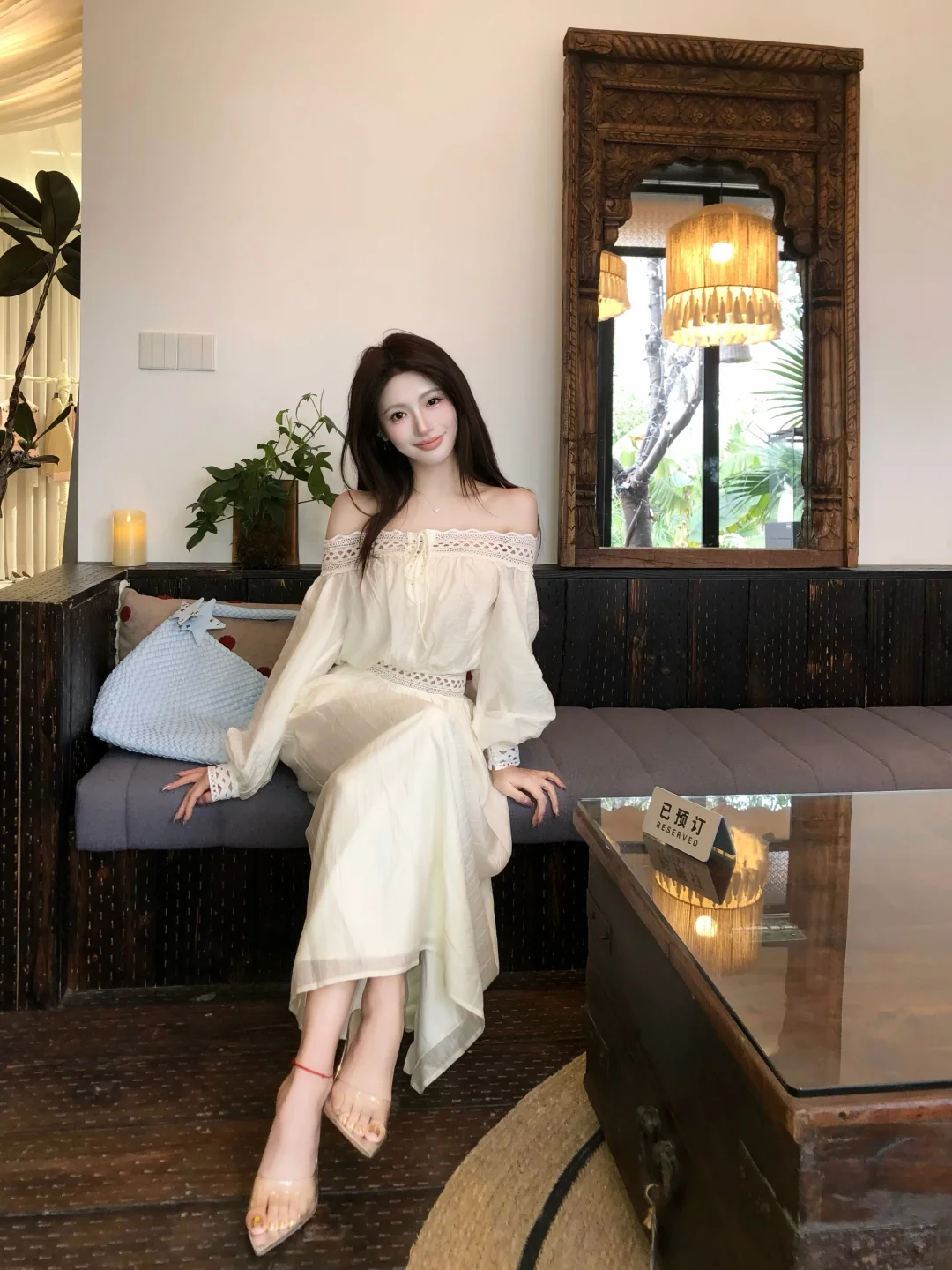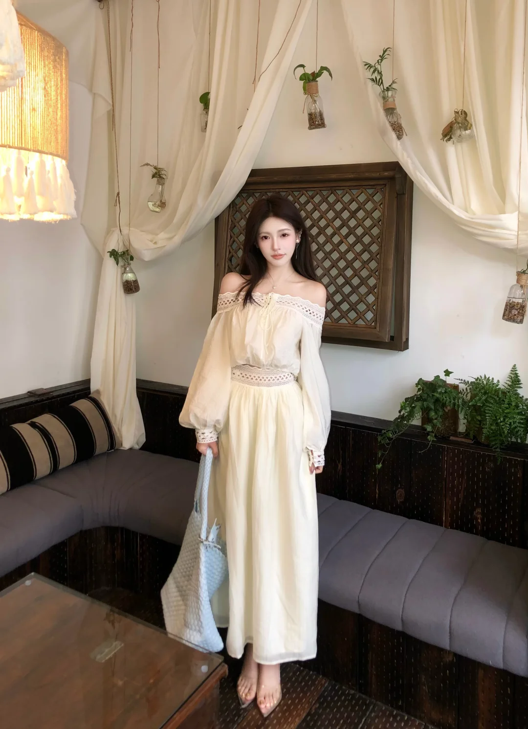 白色连衣裙搭配透明丝袜,简直是优雅气质穿搭的神来之笔!在职场,白色长袖连衣裙是