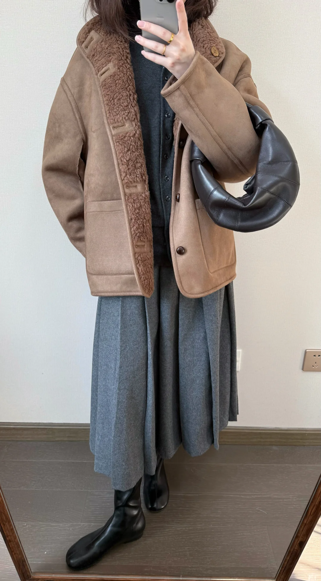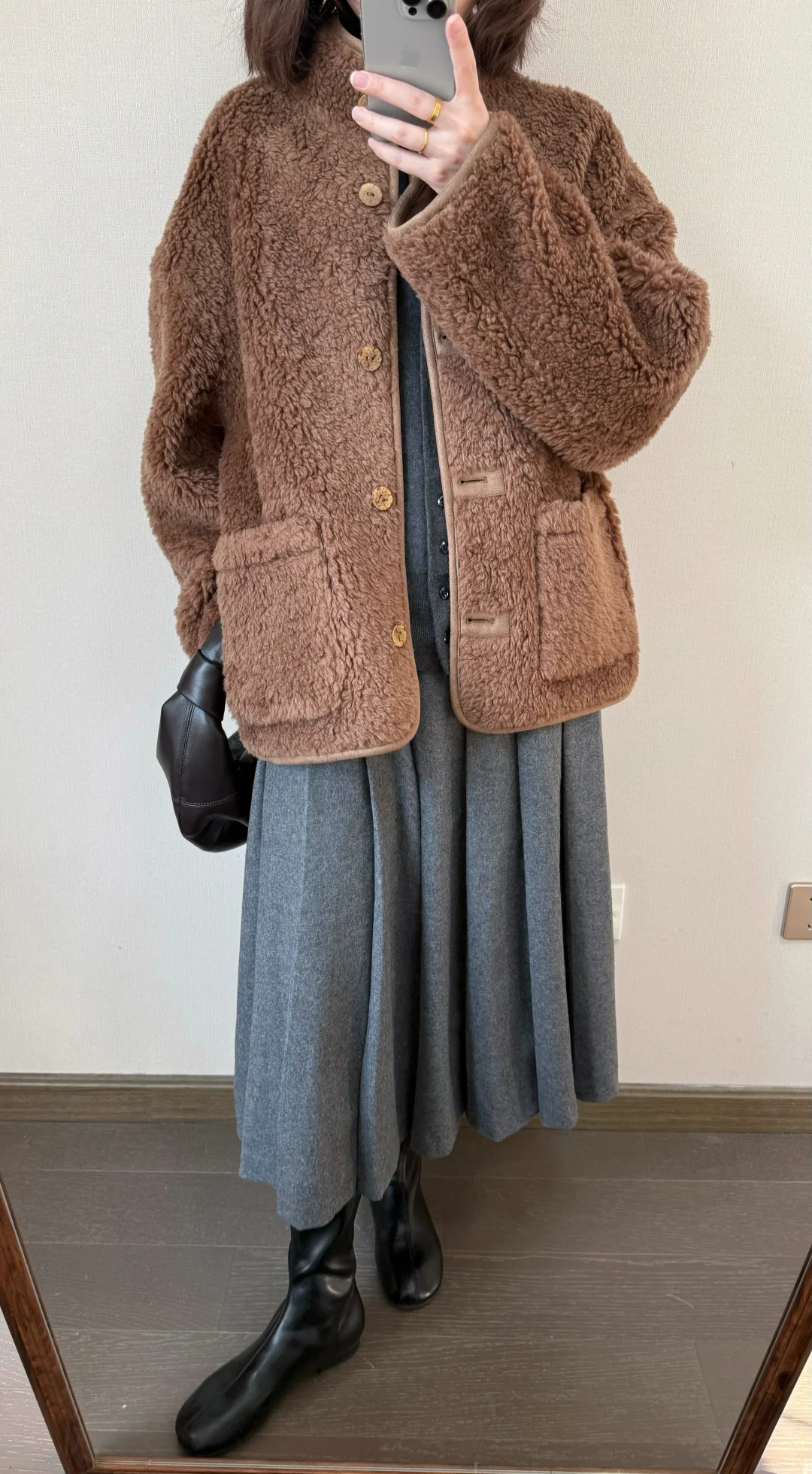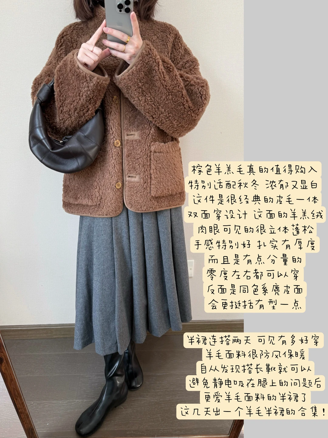 cleanfit简单出门 极简穿搭 通勤穿搭 羊羔毛外套 秋冬外套 棕色系 秋冬穿搭 大衣 皮毛一体外套 冬季外套