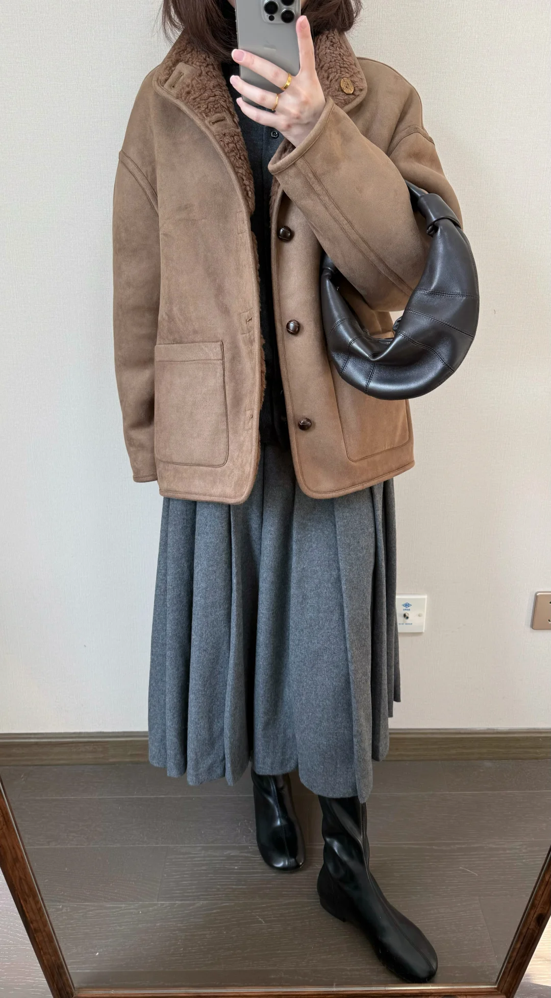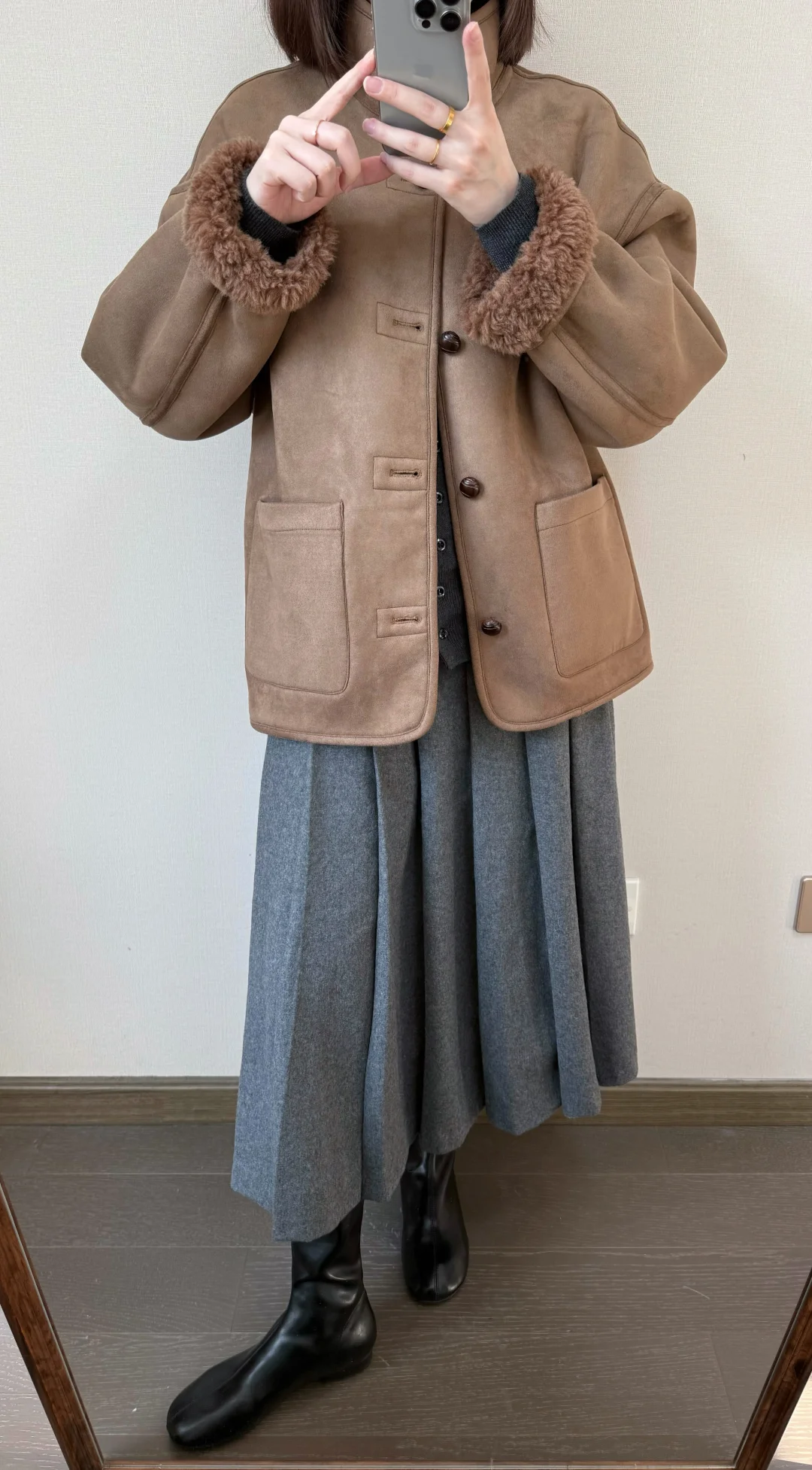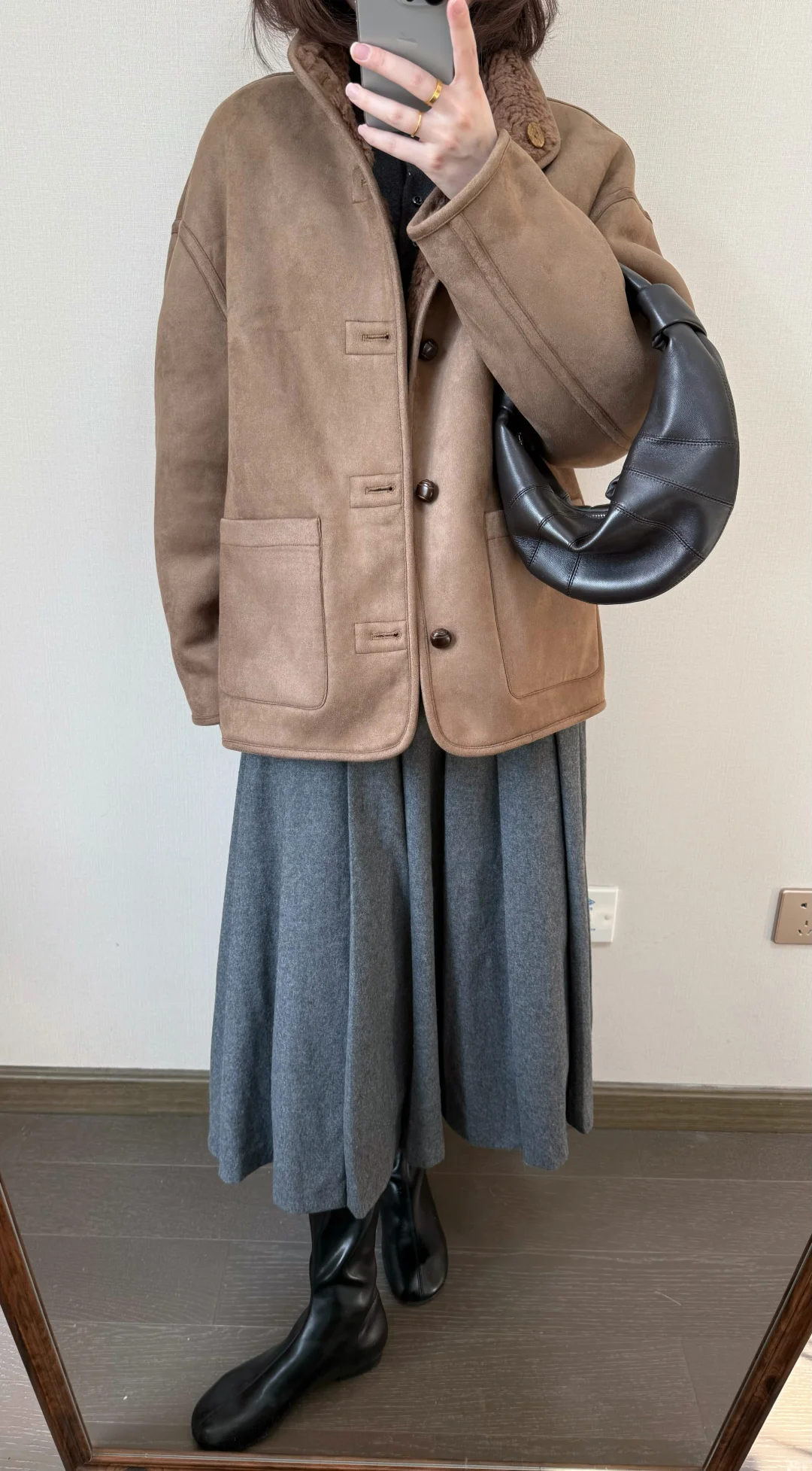 cleanfit简单出门 极简穿搭 通勤穿搭 羊羔毛外套 秋冬外套 棕色系 秋冬穿搭 大衣 皮毛一体外套 冬季外套