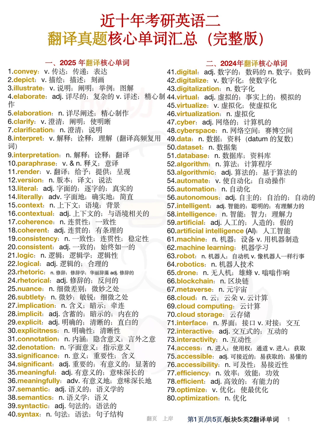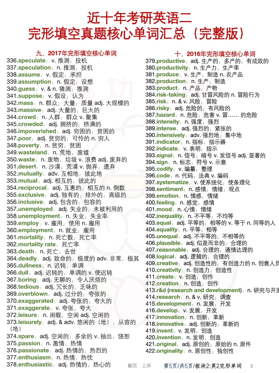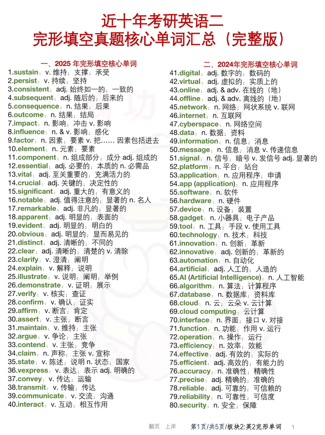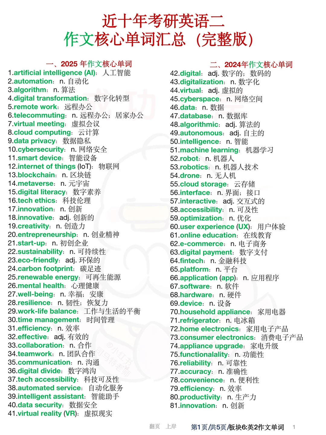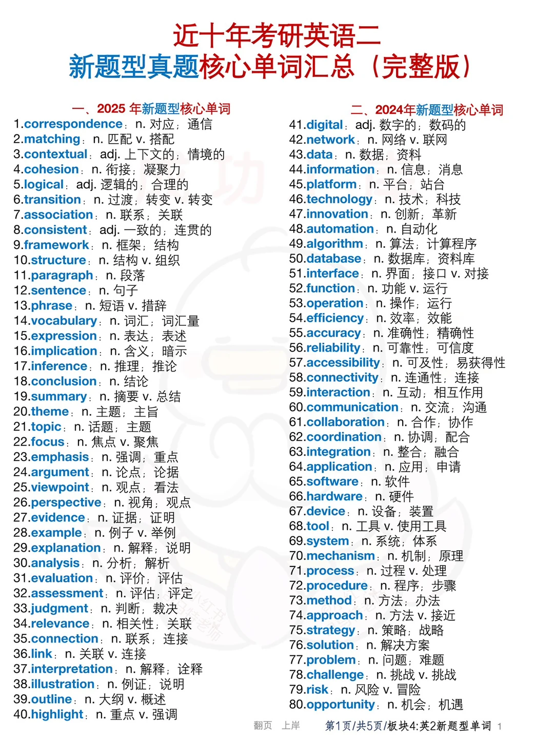 26考研英二救命!直接背真题高频词全家桶 谁懂啊家人们!考研英二真的不用死磕大纲5500词! 汇总了近十年真题高频词全家桶✅ 完形+阅读+新题型+翻译+大小作文 五大题型全覆盖,考啥背啥不做无用功! 省去筛选时间,直接拿着背就行 基础弱、没时间的宝子闭眼冲 26考研英二直接抄作业,分数狠狠拿捏住!
