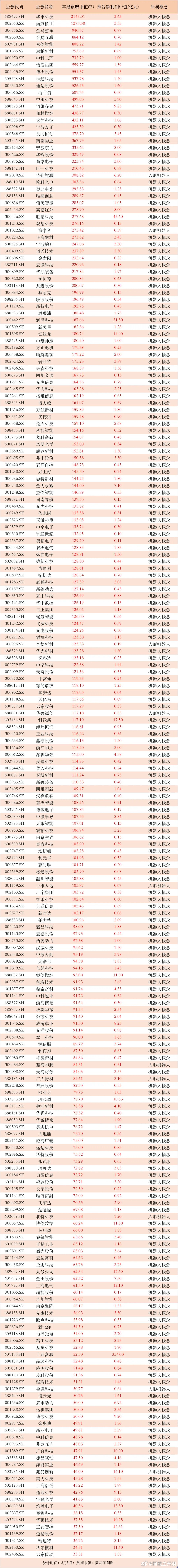 据统计,截至2月5日,机器人(注:含人形机器人)相关,已披露年报业绩预告大增30%以上的公司,逾220家。