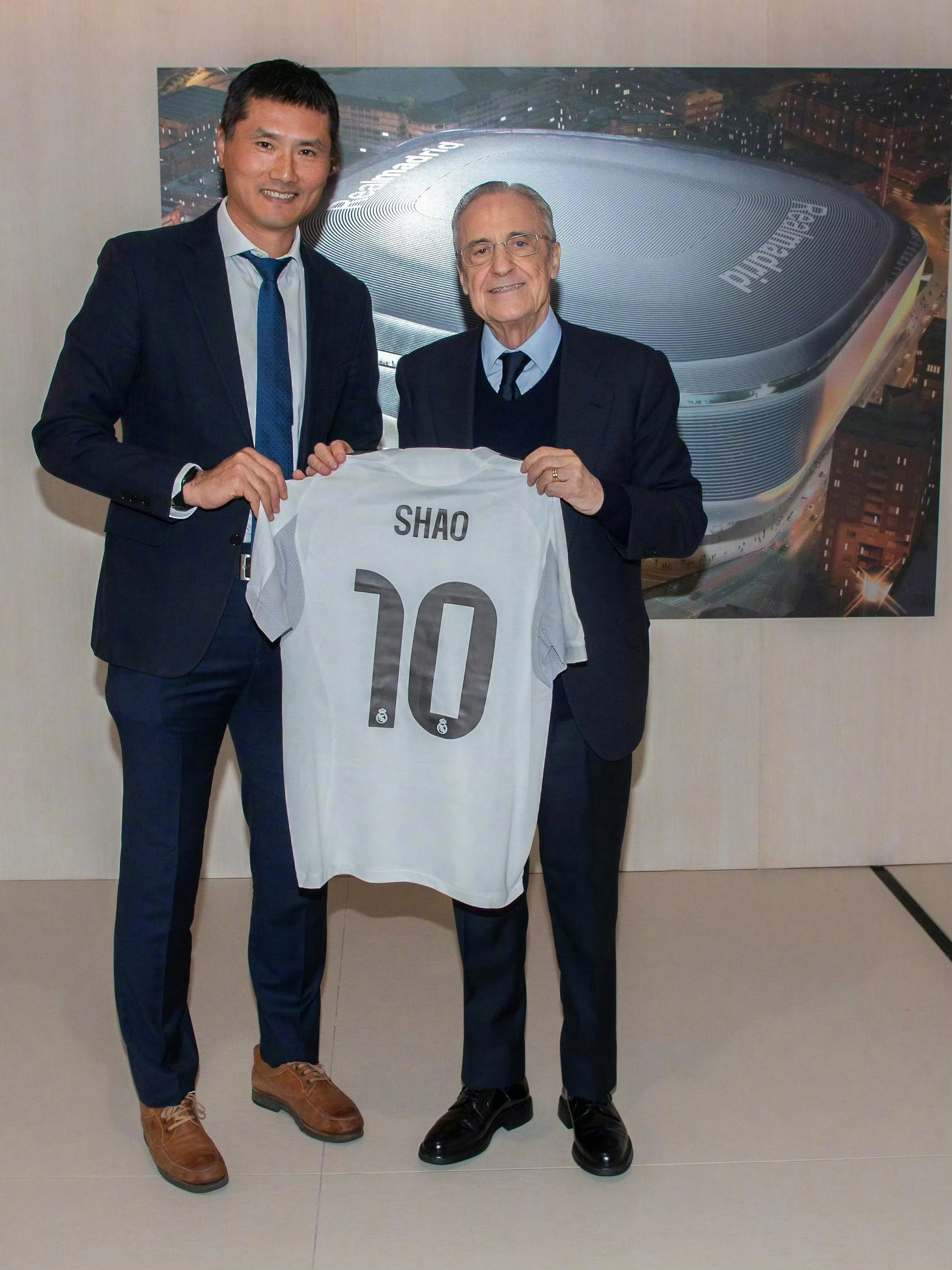 邵佳一造访皇马重磅!国足主帅邵佳一加盟皇马,将身穿10号球衣!🙊🙊🙊 邵佳一弗洛伦蒂诺互赠球衣