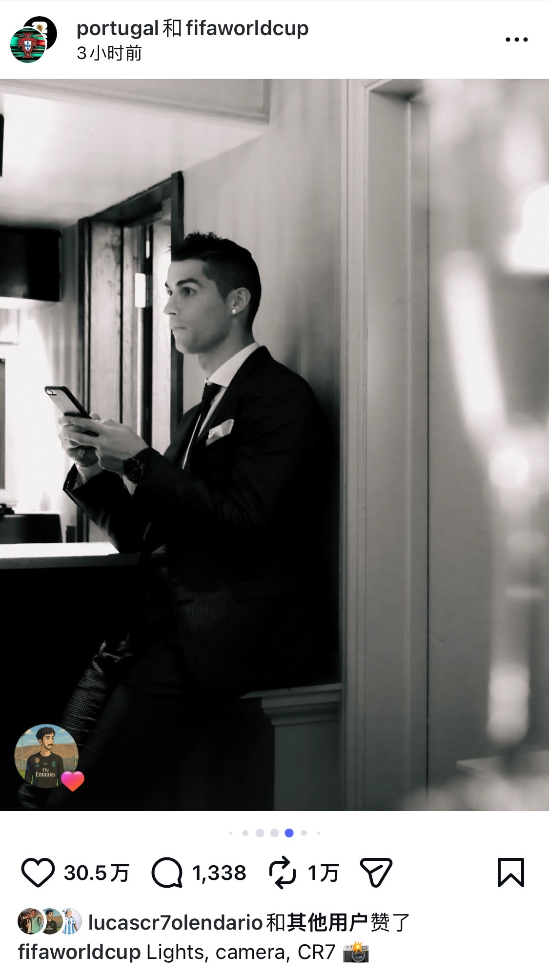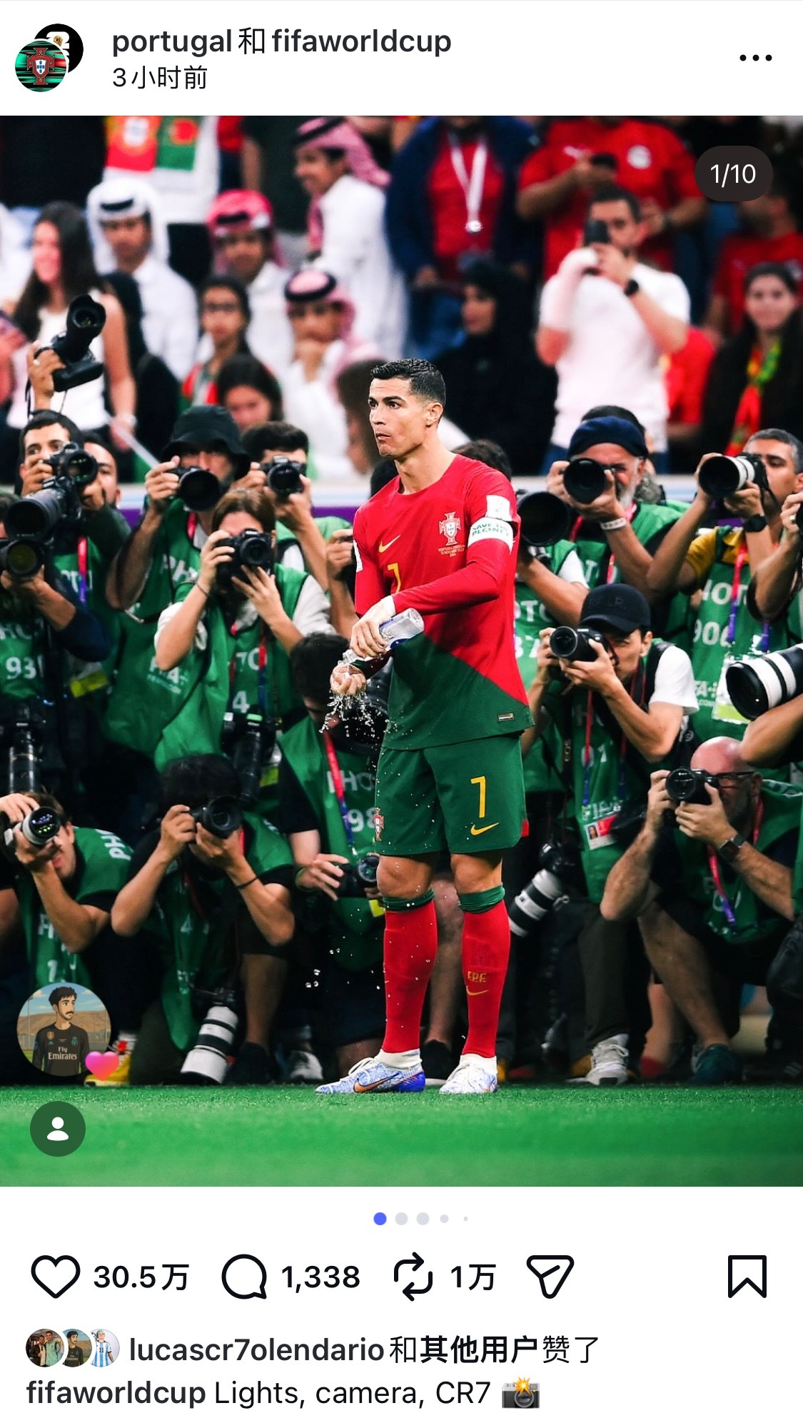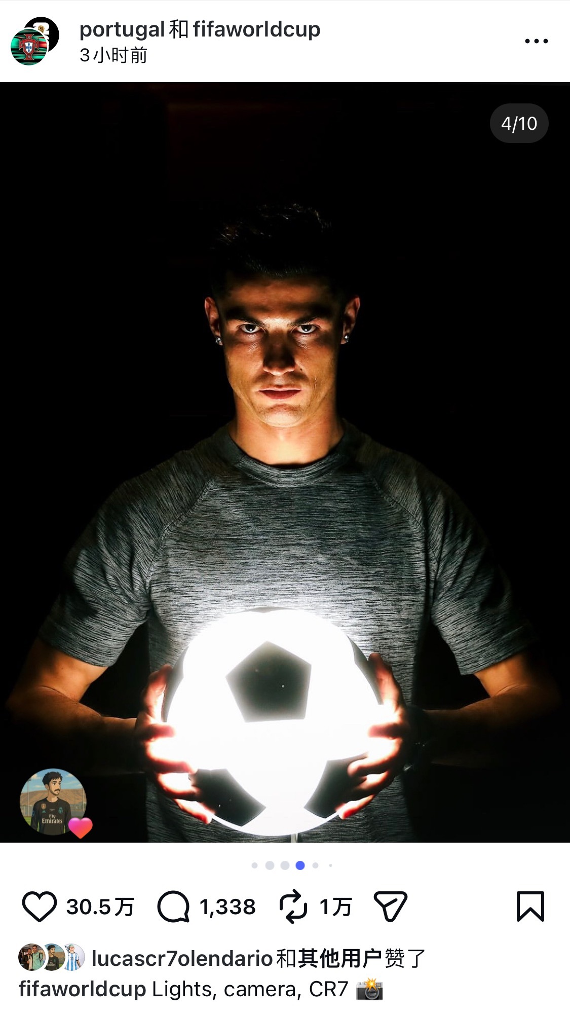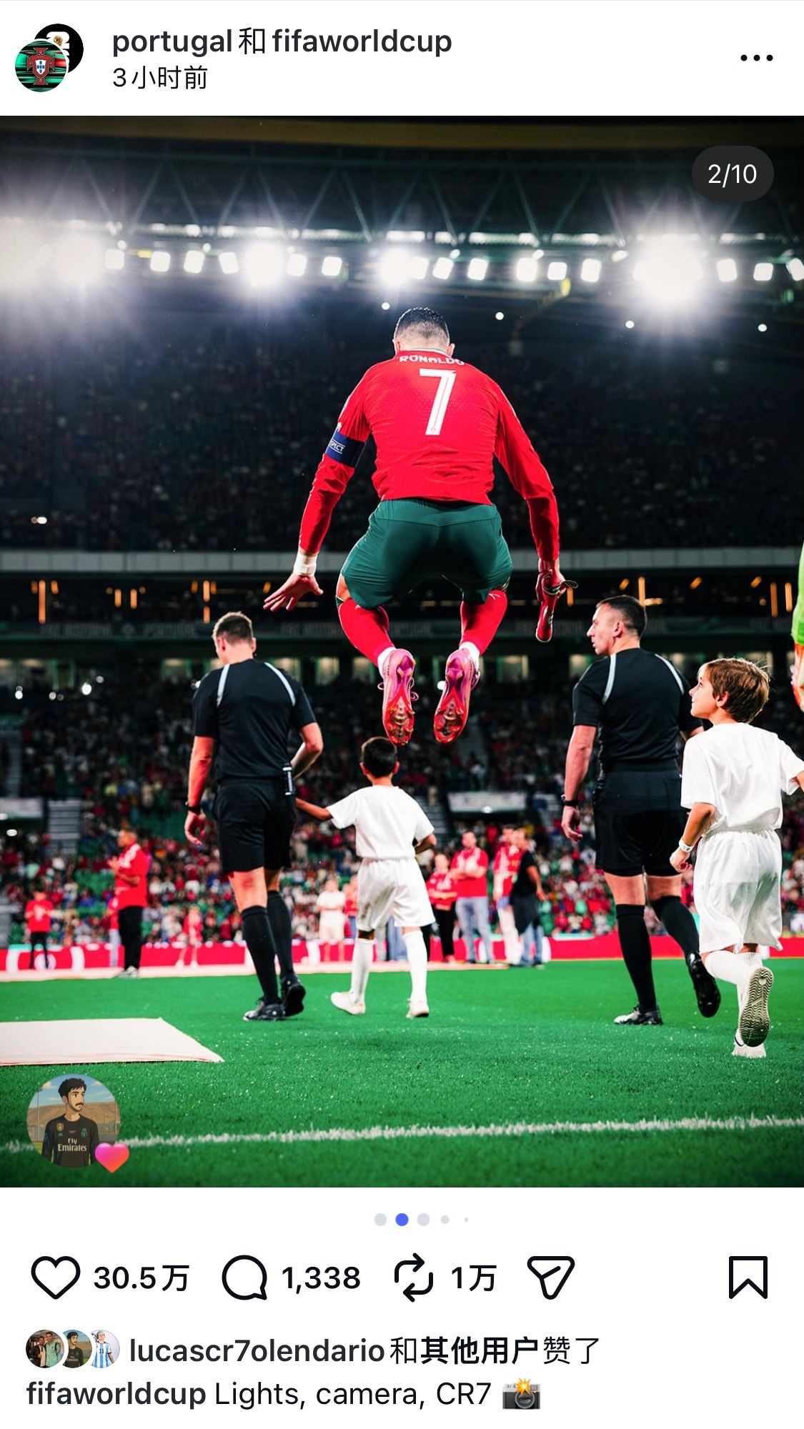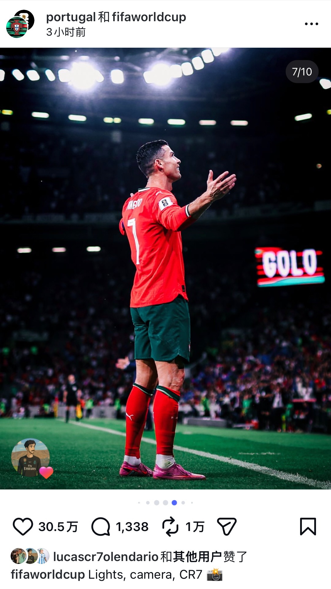 C罗41岁生日快乐 葡萄和世界杯官号联合发了10张照片灯光 + 摄影机+ CR7 = 焦点🐐C罗0205生日快乐