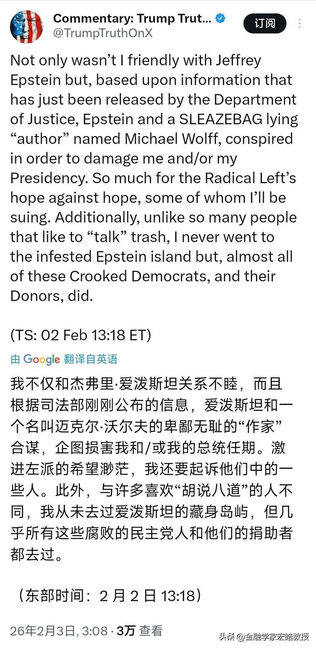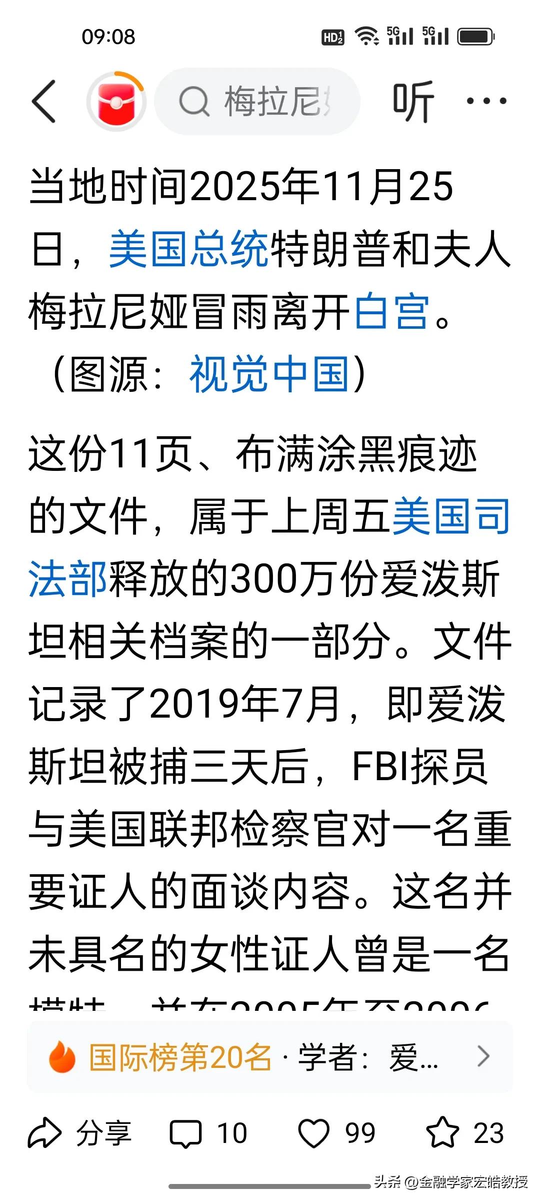 爱泼斯坦案350万页解密文件的全部曝光,算是给这场持续多年的权贵丑闻画上了阶段性句号,最明确的结论之一就是,文件里从头到尾都没出现拜登和小布什的名字,这一点让不少等着看大瓜的人感到意外。 要知道,这350万页文件可不是随便拼凑的,里面包含了庭审记录、证人证词、邮件往来等大量核心材料,是司法部在多方施压下,历经多次延迟、涂黑修改后才完整公布的。连欧洲不少政要的名字都被牵涉其中,偏偏这两位美国前总统和现任总统,全程处于“零关联”状态。 但这份清晰的文件清单,似乎没影响到特朗普的表态,他依旧嘴硬宣称“都是民主党人去了小岛”,把所有脏水一股脑往民主党身上泼。 他在自己的社交平台上反复强调,文件里的线索都指向民主党大佬,还特意点名克林顿夫妇,说他们和爱泼斯坦关系密切。甚至声称克林顿多次到访萝莉岛,可翻遍350万页文件,没有任何实锤能佐证这些说法。 反而有不少证据显示,特朗普自己才是和爱泼斯坦走得更近的人。那些被反复翻出的合影旧照,背景涵盖了晚宴、派对等多个场合,两人并肩而站的姿态,完全不像特朗普口中“关系不好”的样子。更让舆论沸腾的是,有证人直接爆出,特朗普的现任妻子梅拉尼娅,当初正是通过爱泼斯坦介绍才认识的特朗普。 面对这个爆料,特朗普第一时间站出来否认,和他否认去过萝莉岛的态度如出一辙。可很快就有媒体挖出,2002年梅拉尼娅曾给爱泼斯坦的女友吉丝兰·麦克斯韦发过邮件,还称赞了《纽约》杂志上关于爱泼斯坦的报道。这封邮件的曝光,让他的否认显得有些苍白。 要知道,麦克斯韦可是爱泼斯坦性交易网络的核心帮手,最终因诱拐少女等罪名被判了20年监禁。梅拉尼娅与她的直接通信,无疑让特朗普一家和爱泼斯坦的关联更难撇清。有媒体统计过,在已公布的文件中,特朗普的名字被提及超过5300次,远超其他美国政客。 甚至有飞行记录显示,1993年至1996年间,他至少8次乘坐爱泼斯坦的私人飞机,还曾4次和麦克斯韦同行。这些细节都被特朗普选择性忽略,他反而一门心思把矛头对准民主党,甚至威胁要起诉调侃他的脱口秀演员特雷弗·诺亚。 司法部曾特意声明,文件中部分针对特朗普的指控不实,但同时也没否认那些关联记录的真实性。这种模糊的表态,让整个事件更添了几分迷雾。对比之下,拜登在这场风波里反倒成了意外的“清流”,不仅文件里没有他的名字,连他的政治对手都没找到任何能牵连他的实锤。 其实这350万页文件并非完整版本,司法部最初搜集了超过600万页材料,最终公布的只是一部分,还有大量内容被涂黑。剩余文件为何不公开、涂黑部分到底在保护谁,这些问题至今没有答案。或许正是这些未公开的信息,让特朗普还抱有转移视线的底气。 要知道,公布爱泼斯坦案文件原本是特朗普2024年竞选总统时的承诺,可他上台后一再拖延,直到国会通过相关法案才被迫履行。过程中还出现过误曝光受害者信息、紧急撤下文件等乌龙事件。如今文件公布了,没锤出民主党什么问题,反而把他自己的“嘴硬”钉在了热搜上。 这场持续已久的闹剧,早已超越了案件本身,变成了美国两党斗争的工具。350万页文件背后,到底还有多少未被揭开的隐情?特朗普执着于转移视线,真的只是为了自保吗?大家不妨来说说自己的看法。