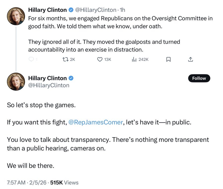 🔻希拉里·克林顿表示,她希望众议院监督委员会对杰弗里·爱泼斯坦的调查举行公开听证会,而不仅仅是闭门作证。🔻好!打起来!扯头花!🔻之前希拉里和克林顿夫妇已经同意出席听证会了。🔻千万别让特朗普政府翻篇,能不能开直播?🔻via clash report海外新鲜事热点现场特朗普政府为何急于将爱泼斯坦案翻篇萝莉岛幸存者曾每天被侵犯3次
