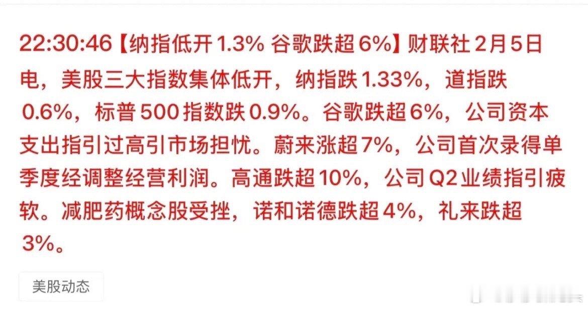 美股三大指数今天晚上集体低开再冲高回落,纳斯达克指数短线偏弱的格局基本已经成型。