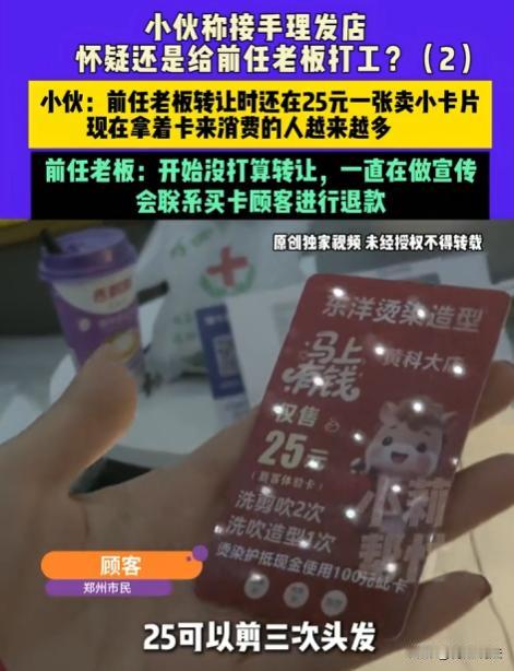 河南郑州,牛先生怀揣理发创业梦,花3万接手一家理发店,本以为能大展拳脚,可才干了三四天,每天至少十几个顾客拿着小卡片上门,卡片是前任老板宣传卖的,25元能享受多项服务,牛先生忙得脚不沾地,却一毛钱没挣到,感觉在免费给前任打工,咽不下这口气的他,找到前任老板讨要说法。 三万块砸下去,牛先生的理发店开起来了,他想靠手艺吃饭,谁知一开头就掉坑里,不是手艺不行,是前任挖的坑太深。 接手才三四天,店里跟赶集似的,不是生意好,是来讨债的,十几个顾客手里攥着小卡片,往椅子上一躺:剪头,二十块的套餐。 牛先生懵了,这是个什么套餐? 前任老板跑路前,印了一堆这种卡,二十五块钱,能洗能剪还能吹,好几项服务,这价格连成本都不够,纯粹是圈钱,牛先生接盘时,前任嘴跟贴了封条似的,提都没提这茬。 最气人的是,牛先生忙得汗流浃背,剪刀都快冒烟了,收银机一分钱没进,全是这种烂卡,这哪是做生意,这是给前任免费打工呢,一天下来,光水电费都赔进去了。 咽不下这口气,牛先生找上门去,前任倒好,玩失踪,电话不接,人影不见,这不是欺负老实人吗?三万块转让费,就买了个这?任谁也得炸毛。 没办法,找媒体曝光,记者一来,前任露头了,也是怕事情闹大,终于松口,答应啥?答应给顾客退钱,每张卡退二十五,这钱得他自己掏腰包。 早干嘛去了?非要等到别人揭短才认账,这前任的吃相,太难看,做买卖讲究个诚信。 法律上,这事很清楚,转让店铺,重要信息必须披露,这么多低价卡没说,就是隐瞒事实,构成欺诈。 牛先生要是狠点心,这合同都能撤销,让前任把吃进去的钱吐出来。 现在是调解了,前任答应退款,但这几天的损失谁赔?牛先生的时间精力谁补?创业本来就难,还得防着这种老狐狸,真是防不胜防。 看热闹的网友不少,有人说牛先生太实诚,接店前不查清楚,话是这么说,可谁能想到前任能这么阴?卡片上又没写名字,谁知道发出去多少张? 这也给想创业的提个醒,接手店铺,别光看地段装修,得把账算细,这些隐形债务最要命,一不小心,就成了接盘侠。 前任老板这招“金蝉脱壳”玩得溜,钱赚到手了,烂摊子留给别人,但他忘了,跑得了和尚跑不了庙,真要走法律程序,他那点小聪明不够看。 现在的局面是,顾客拿着钱走了,牛先生空欢喜一场,前任破财免灾,看似解决了,其实牛先生心里的疙瘩解不开,这创业第一步,迈得太坎坷。 细节再想想,前任为啥急着转?是不是早就知道这卡卖超了,兜不住了?找个冤大头接盘,自己拿钱走人,这算盘打得,噼里啪啦响。 那么,以法律的角度该如何看这件事呢? 前任老板的行为,明显触犯了民法典中关于民事欺诈的相关规定。 他在转租理发店时,故意隐瞒大量已预售低价服务卡这一关键信息,且在签约后仍继续售卡,这属于以欺诈手段使牛先生在违背真实意思的情况下订立合同。 依据民法典第一百四十八条,牛先生有权请求人民法院或者仲裁机构撤销该合同。 合同撤销后,前任老板需返还牛先生3万转让费,还要赔偿牛先生因处理此事产生的合理损失,比如误工费等。 对于消费者,前任老板违背了与消费者间的服务合同,应按消费者权益保护法第五十三条,向消费者全额退款。 牛先生要是懂点法,直接起诉撤销合同,不仅能拿回转让费,还能要赔偿,但他选择了最温和的方式,只要前任退款。 顾客以为占了便宜,其实是被两个老板当球踢,前任收了钱,现任出了力,最后还得前任把钱吐出来,绕了一圈,图啥? 前任老板虽然答应退钱,但肯定心里在骂娘,本来想空手套白狼,结果惹一身骚,这就是因果报应,不是不报,时候未到。 牛先生的遭遇,不是个例,很多转让的店铺,背后都有一堆烂账,新手进场,要是不请个会计把底摸透,就是给人送钱。 这两万五的卡,说白了就是个债券,前任发的债,牛先生还得认,虽然法律上可以不认,但为了口碑,牛先生还得接着,这就是做生意的无奈。 心里还是替牛先生憋屈,三万块不是大风刮来的,就这么被前任摆了一道,换谁都得气得睡不着觉。 最后还是那句话,诚信是金,前任丢了诚信,以后在这行也混不下去,牛先生吃了亏,但也买了个教训这买卖,谁赚谁赔,时间会给出答案。 牛先生的店,希望能挺过这一关,把技术练好,服务做上去,慢慢把口碑做回来,钱没了可以再赚,信心没了就什么都没了。 事情就是这么个事情,理就是这么个理,希望正义虽然迟到,但别缺席,牛先生,加油干吧,把失去的都赚回来。 这前任老板,最好别再让人看见他在这行混,不然,见一次曝光一次,这种人,就是行业的老鼠屎,坏了一锅粥。 前任的恶,牛先生的难,法律的理,这就叫天网恢恢,疏而不漏。 不过,这里也有争议点,比如牛先生接手时是否尽到审慎义务,没发现卡片问题是否自身也有责任? 您觉得在这件事里,牛先生自身该承担多少责任呢?