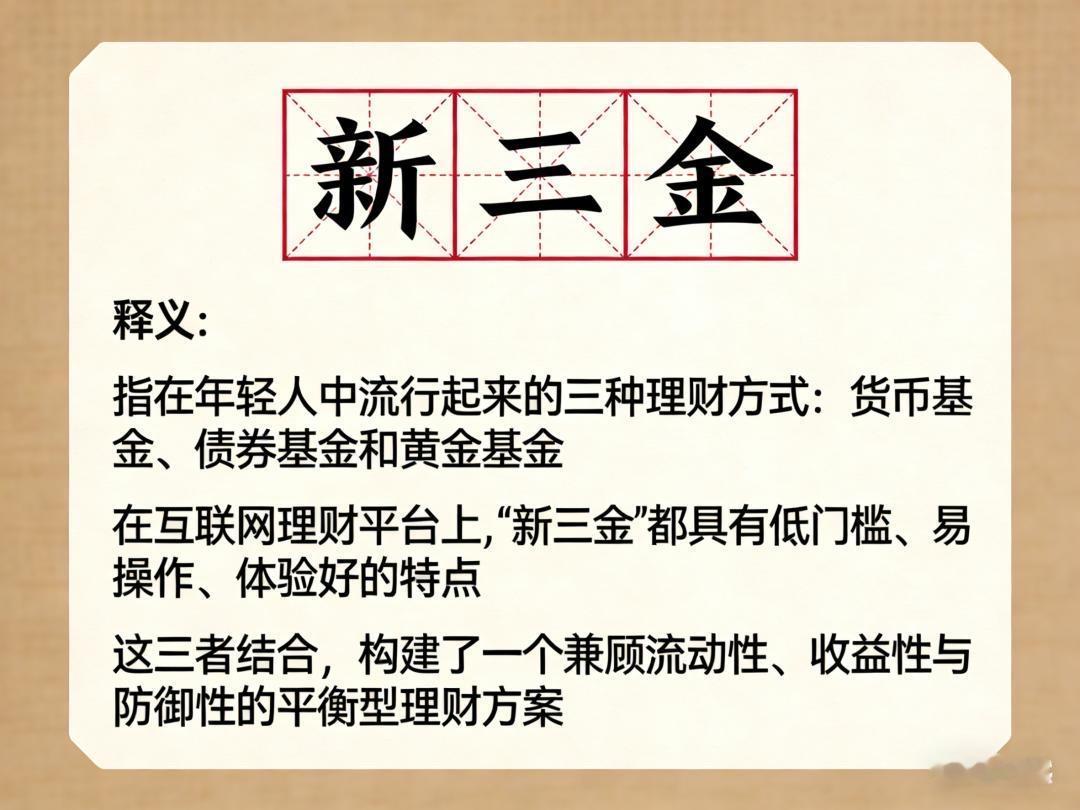当父母还在纠结婚嫁“三金”该选多大克数的金镯,年轻人早已悄悄换了“财富配方”——如今爆火的“新三金”,根本不是金银首饰,而是货币基金、债券基金、黄金ETF的理财组合!蚂蚁财富数据显示,截至2025年底,超2100万用户配齐“新三金”,年轻人占比近半,这场“三金革命”的背后,藏着当代年轻人最清醒的生活哲学。 谁没经历过“存款焦虑”?一年期定期利率低至0.95%,把钱存银行眼睁睁看着贬值;跟风买股票、加密货币,又怕一夜回到解放前。95后上班族王君颜的选择戳中无数人:“把零钱通当现金管家,债基做‘压舱石’,再配点黄金ETF对冲风险,4年赚了3000多,比存款香多了”。比起传统三金“看得见摸不着”的面子,年轻人更想要“握在手里的安全感”——1元起购、随取随用的灵活,风险分散、稳健增值的踏实,才是这届年轻人的理财刚需。 更戳心的是婚嫁场景的迭代。曾经的金镯子是父母给的“体面背书”,如今的新人更愿意互赠年金险、增额寿险组成的“保障型新三金”。领证当天签一份保单受益人写对方名字,把“一生相伴”的承诺变成实实在在的财务支撑:婚前财产有保障,婚后育儿、养老有储备,比起易损耗的金饰,这种“把爱写进长期”的方式,才是对婚姻最负责任的表达。太平洋保险数据显示,2025年这类婚嫁保单销量暴涨62%,年轻人用理性重新定义了“彩礼的意义”。 这股热潮从来不是跟风,而是时代倒逼的成长。经历过市场波动的年轻人,早就放弃了“赌徒式搞钱”,转而追求“稳稳的幸福”。货币基金管日常开支,债券基金攒长远底气,黄金ETF对冲风险这套“低能耗搞钱组合”,不用盯盘厮杀却能在积少成多中收获成就感。就像网友说的:“我们不再执着于‘穿金戴银’的炫耀,更在意‘科学配置’的踏实,这不是抠门,是对生活的掌控感”。 从“被动存钱”到“主动理财”,从“面子消费”到“实用主义”,“新三金”的流行本质是年轻一代理财观的成熟。它告诉我们:真正的安全感,不是靠一件首饰撑起来的,而是靠清醒的规划和稳健的积累。 你配齐自己的“新三金”了吗?是偏爱理财组合,还是认同保单式婚嫁保障?欢迎在评论区分享你的理财故事,聊聊这届年轻人的“搞钱新思路”!