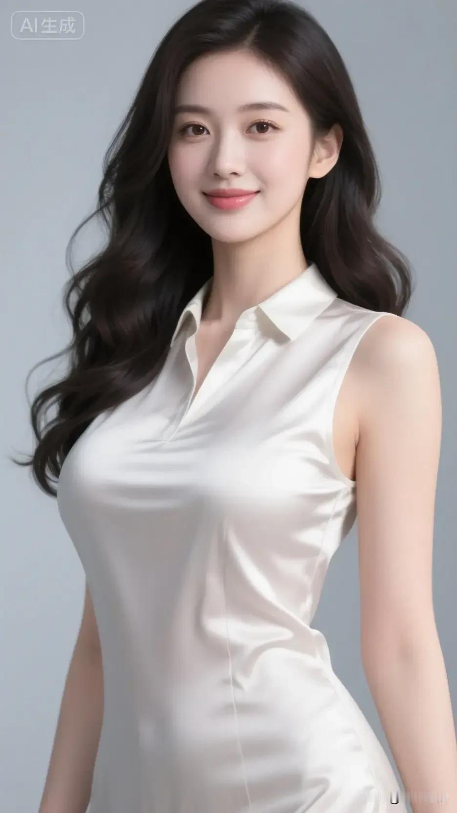 米白缎面泛着细腻柔光,无袖剪裁衬得肩颈线条愈发舒展。她笑眼弯弯,蓬松卷发漾着温柔弧度,在浅灰背景里,把松弛的优雅揉成了恰到好处的氛围感。 温婉高级 温柔风白裙
