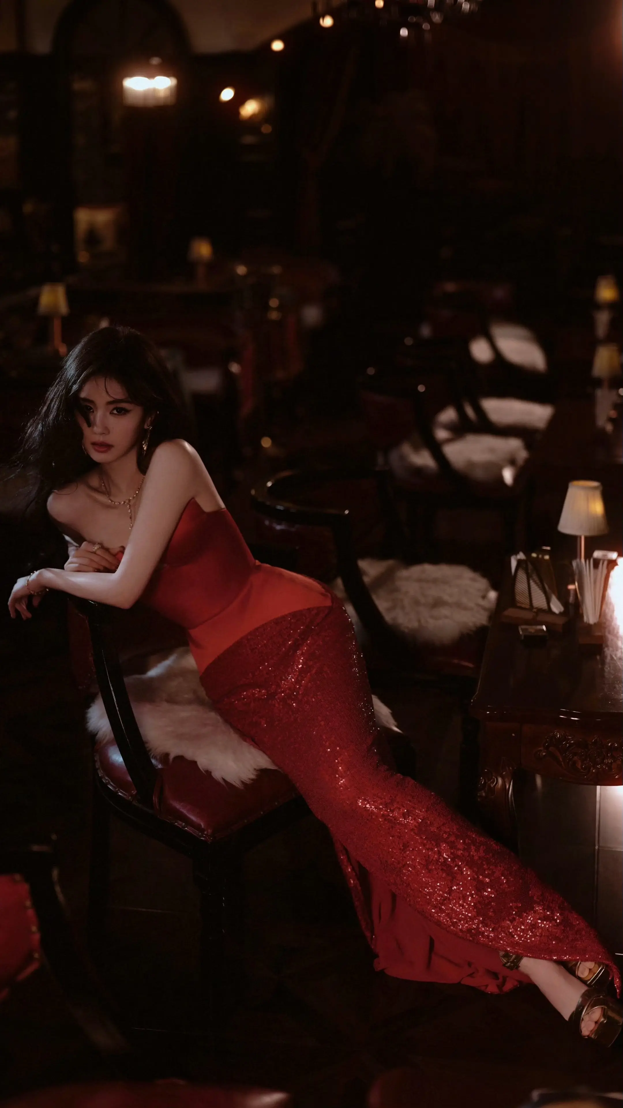 刘亦菲喝醉酒微醺的状态被拍到,脸上已经泛起了红晕,被拍到后眼神微怒