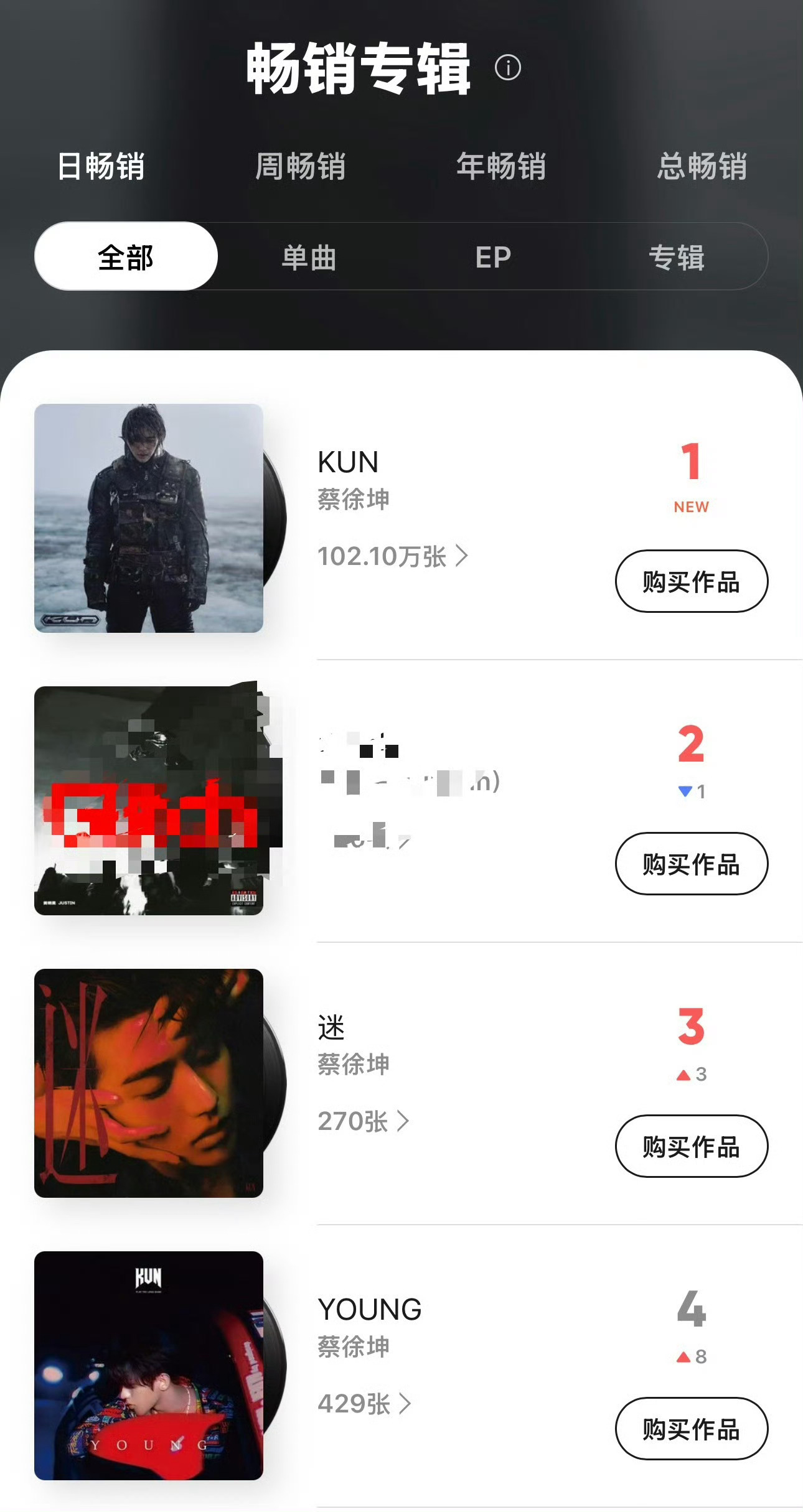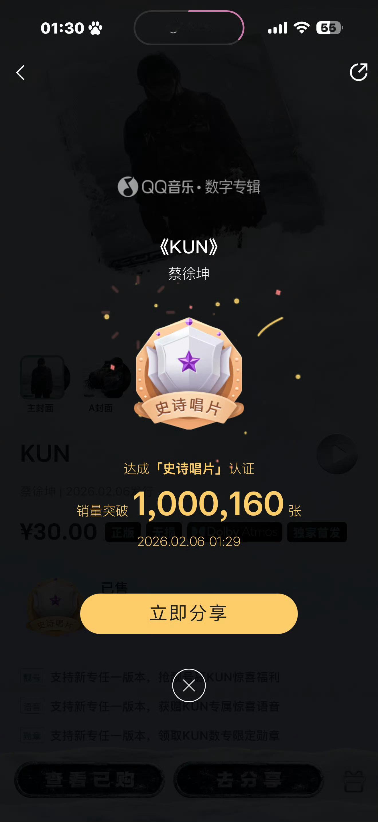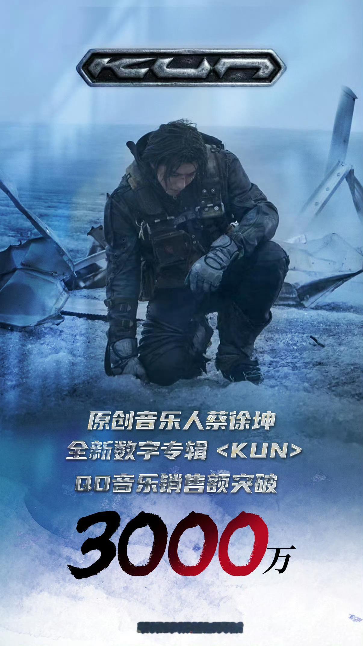 蔡徐坤蔡徐坤全新数字专辑《KUN》QQ音乐销售额突破30000000!!!