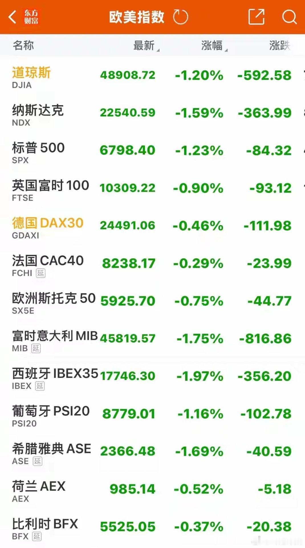 昨夜欧洲股市同样全线收跌。英国富时指数平开后震荡下行,最终收跌0.90%;德国DAX、法国CAC、欧洲斯托克指数均高开低走,分别收跌0.46%、0.29%和0.75%;富时意大利指数同样高开低走,跌幅较大,收跌1.75%。