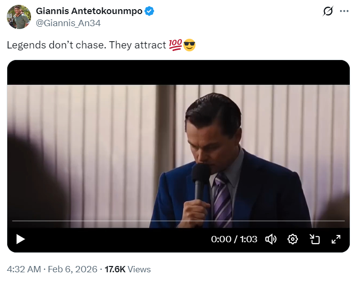 嚯嚯嚯!字母哥更新个人社媒动态:“真正的强者从不刻意讨好,他们自带吸引力。”