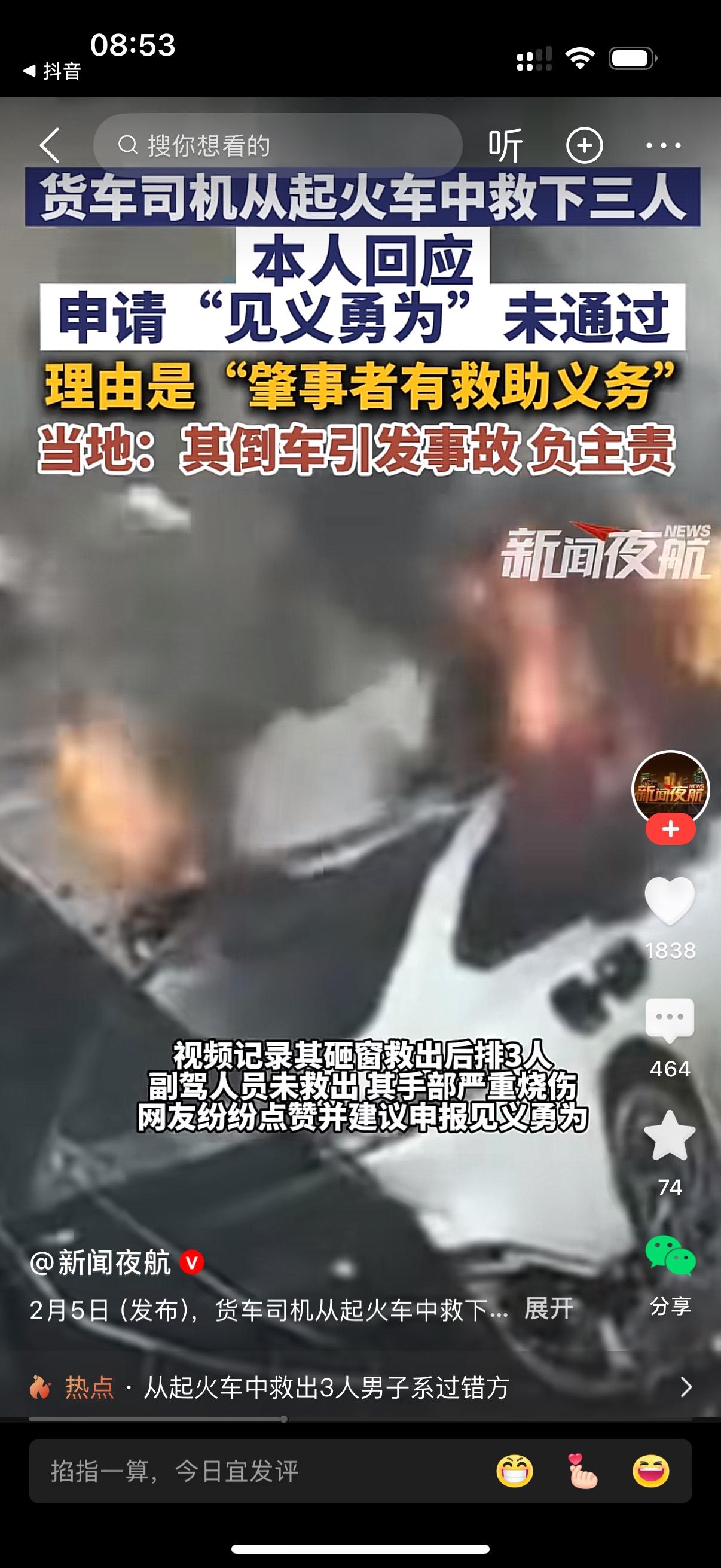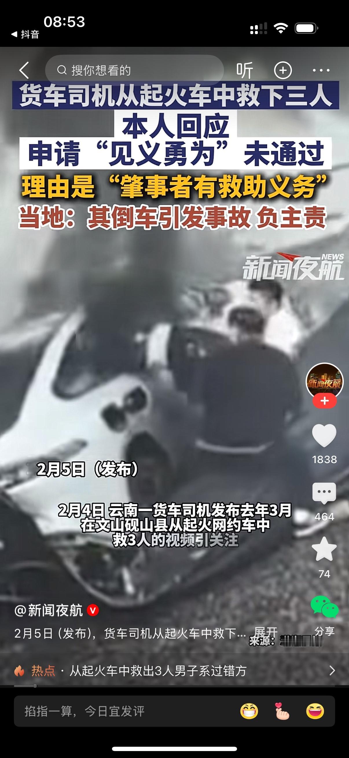 家人们,刷到这事儿我直接笑出感慨,堪称现实版“解铃还须系铃人”!一大哥倒车没留神,直接把别人车干起火了,眼看车里仨人要遇险,大哥也是个狠人,二话不说冲上火海把人全救了出来。 本以为自己这波英勇操作,怎么着也能混个见义勇为称号,美滋滋去申请,结果被官方一口回绝,大哥估计当场懵圈。为啥?原因超简单:这祸就是你闯的啊! 合着大哥是事故肇事者,这场火灾全因他倒车失误引发,从法律上说,他对事故里的伤者本就有法定救助义务,救是本分,不救还得吃牢饭。见义勇为那是“分外事”,是路人路见不平出手相助,自己挖坑自己填,可不能算额外立功。 虽说大哥火场救人够勇敢,没选择跑路,这波担当值得点个赞,后续处罚也能酌情从轻,但想拿见义勇为的荣誉,那真是门儿都没有。毕竟总不能先闯祸再救人,就摇身一变当先进,这逻辑可讲不通。 只能说,勇敢归勇敢,本分归本分,自己引发的危机自己救,真没法算见义勇为~这波驳回,法理上那是相当站得住脚!