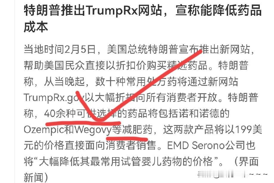 罕见!特朗普推出了TrumpRx网站,宣称能降低药品成本。这是啥情况?这是特朗普开始在自己的网站上卖药了吗?这是又开始为自己家族赚钱了? 还记得特朗普总统的年薪吗?好像是40万美元,但是他在选举前他明确说了他要放弃薪水。 现在看来,放弃薪水是对的,因为他当上总统后自己的生意没有间断啊,一直在想办法赚钱。 现在他推出的网站卖的是什么药?诺和诺德的减肥药赫然在列啊?他这是瞄准了美国的肥胖人数吗?其他不说,还记得美国军队的肥胖照片吗? 哎!特朗普的生意头脑无敌了。[捂脸]