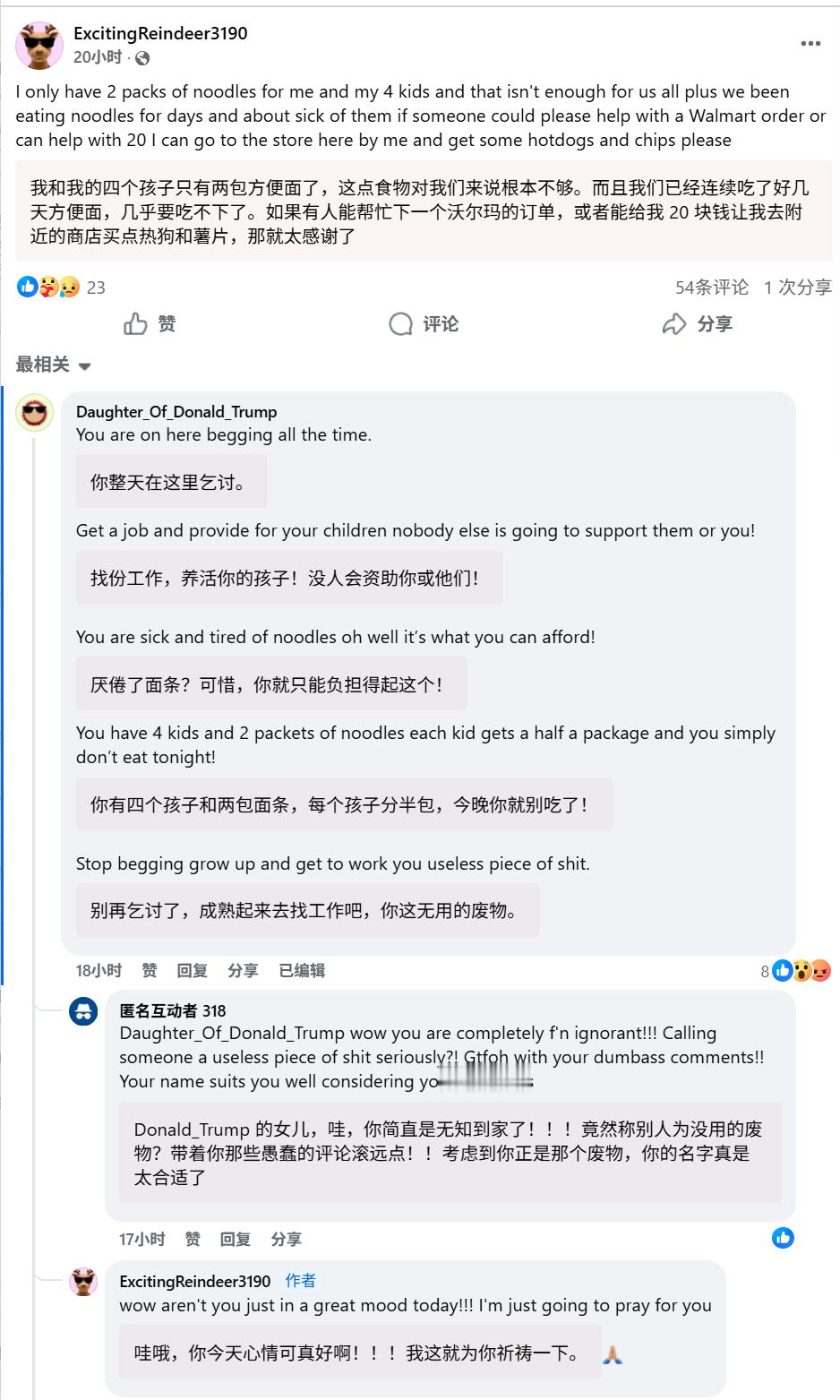 🔻网友分享:这是今天份在线乞讨的美国人。海外新鲜事 热点现场 特朗普政府为何急