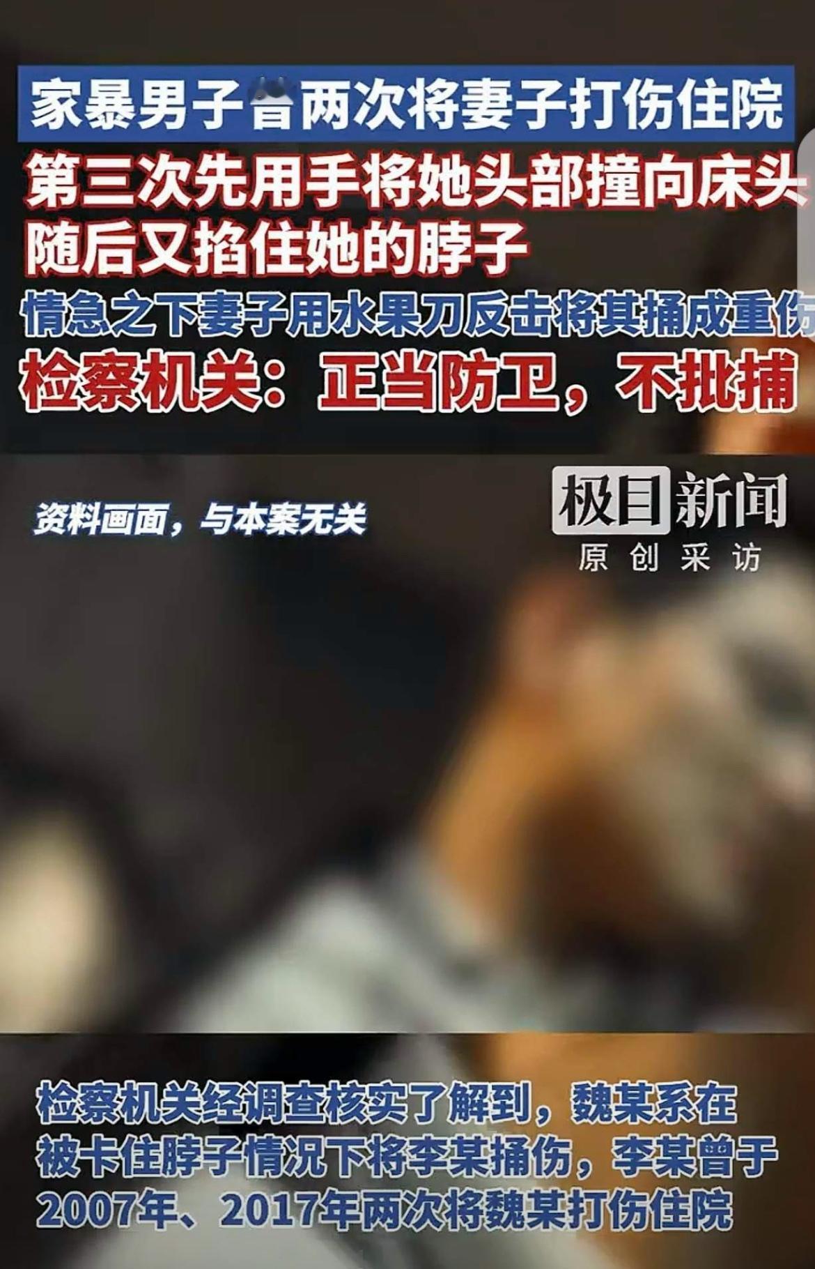 【打老婆的“代价”到底有多大?湖北一女子三次挨打反击,结果却成了“罪人”!】 大家好,今天给大家带来一段“家庭版生死时速”,故事的主角是湖北的魏女士,她的丈夫李某,曾经是恩爱夫妻的模样,结果演变成了一场“家庭暴力大戏”。这事儿,真是让人看了直摇头,也让人思考:打老婆的“代价”到底有多大? 故事要从一开始说起。魏女士和李某原本是那种“郎才女貌”的情侣,大家都觉得他们未来一定幸福美满。可是,婚后没多久,李某的“真面目”就开始逐渐露出来。起初只是一些小脾气,后来变成了“拳头”攻击,直到变成了“家庭暴力专业户”。 第一次出事是在魏女士被打伤住院之后。她以为这只是个意外,谁知道,没过多久,李某又“发疯”似的对她动手。第二次打完伤得更重,魏女士的身体和心灵都受到了极大的伤害。 到了第三次,李某似乎彻底失控了。他先是抓住魏女士的头,把她往床头撞,差点要了她的命。紧接着,又掐她脖子,想让她“安静”下来。魏女士在生死边缘徘徊,情急之下,她终于拿起水果刀反击。结果,刀下得狠,李某被捅成了重伤二级,场面一度变得血腥而令人震惊。 你以为事情就此结束?没想到,警察来了之后,居然把魏女士带走了。理由竟然是“涉嫌故意伤害”。魏女士哭诉:“我是在正当防卫啊!我怕死啊!我都快没命了!”但警方的决定让所有人都觉得匪夷所思——检察院居然提请逮捕了她。 这到底是怎么回事?难道打老婆就可以“逍遥法外”?答案显然不是。我们得看看事情的全貌:魏女士嫁给李某,起初恩恩爱爱,日子过得还算不错。可是,随着时间推移,李某的“本性”逐渐暴露,变成了“家庭暴力的常客”。 其实,这个故事折射出一个社会普遍存在的问题:家庭暴力到底该如何应对?有人说:“打老婆的男人真是没救了,打了就得付出代价!”但现实是,很多受害者在忍气吞声中度日,直到事情失控才反击,结果反倒成了“罪人”。 我们得问:正当防卫的界限在哪里?魏女士说她是在“生命受到威胁”的情况下反击的,这难道不是合法的自我保护?可是,法律似乎还没有给出明确的答案。 这起事件让人深思:家庭暴力不只是一场“打打闹闹”,它可能带来无法挽回的后果。打老婆的“代价”到底有多大?除了身体上的伤害,更可能是法律的制裁、家庭的破碎,甚至是生命的失去。 所以,朋友们,家和万事兴,别让“拳头”成为家庭的“调味料”。如果你身边有人遭遇家庭暴力,千万不要忍!勇敢站出来,用法律武器保护自己 最后,给所有家庭一句话:爱要用心经营,别让“打”成为“家”的常态。否则,打老婆的“代价”可不止是一次“挨打”那么简单! ——这就是“打老婆的代价”,你怎么看?欢迎留言讨论!家暴