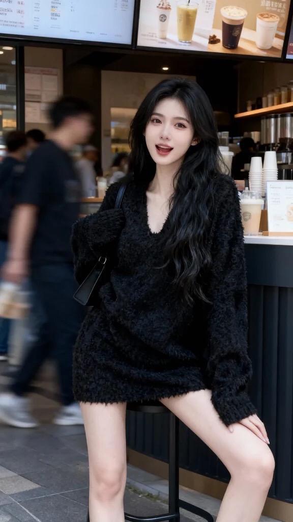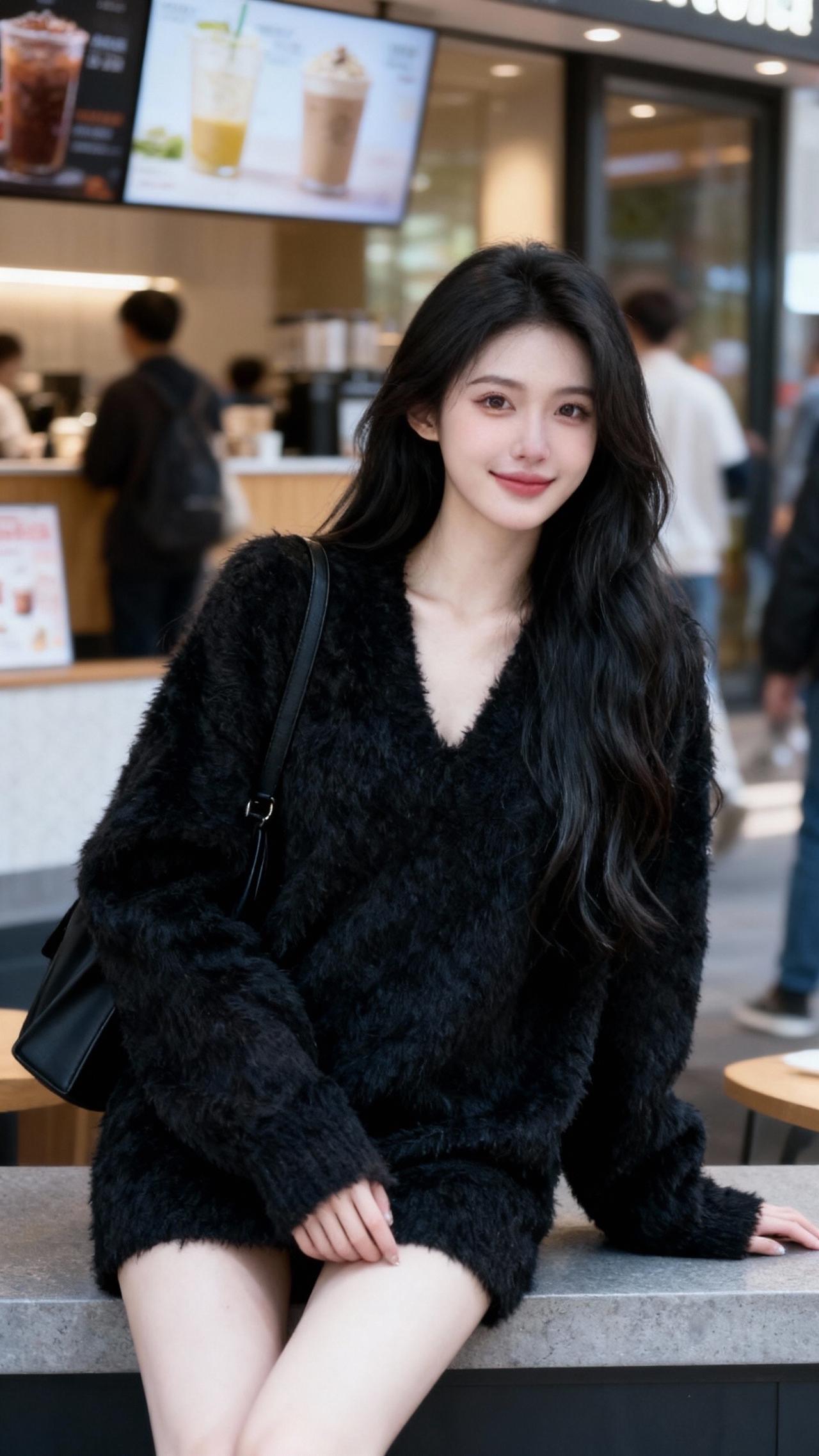 黑色连衣裙白色连衣裙中国风穿搭御姐拍照姿势黑色礼服
