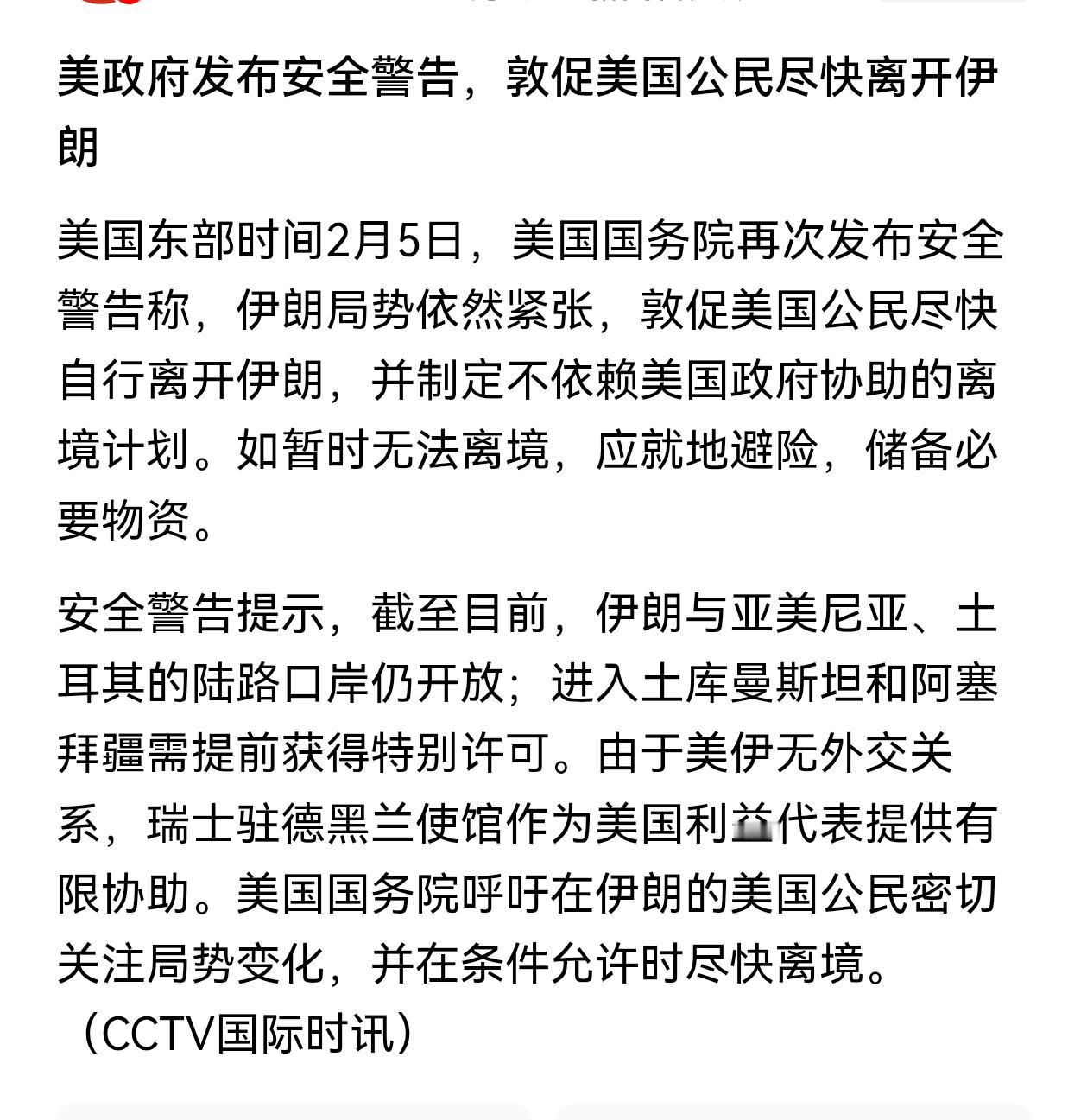 美国警告在伊朗的美国公民,要他们尽快离开伊朗! 为了以下几点,特朗普必会动手: 为了保住特朗普的面子, 为了转移爱波斯坦事件对特朗普的影响, 为了即将到来的中期选举,获得支持率, 为了特朗普一直在抓全球资源,石油和矿产等, 为了配合对黄金的收割,