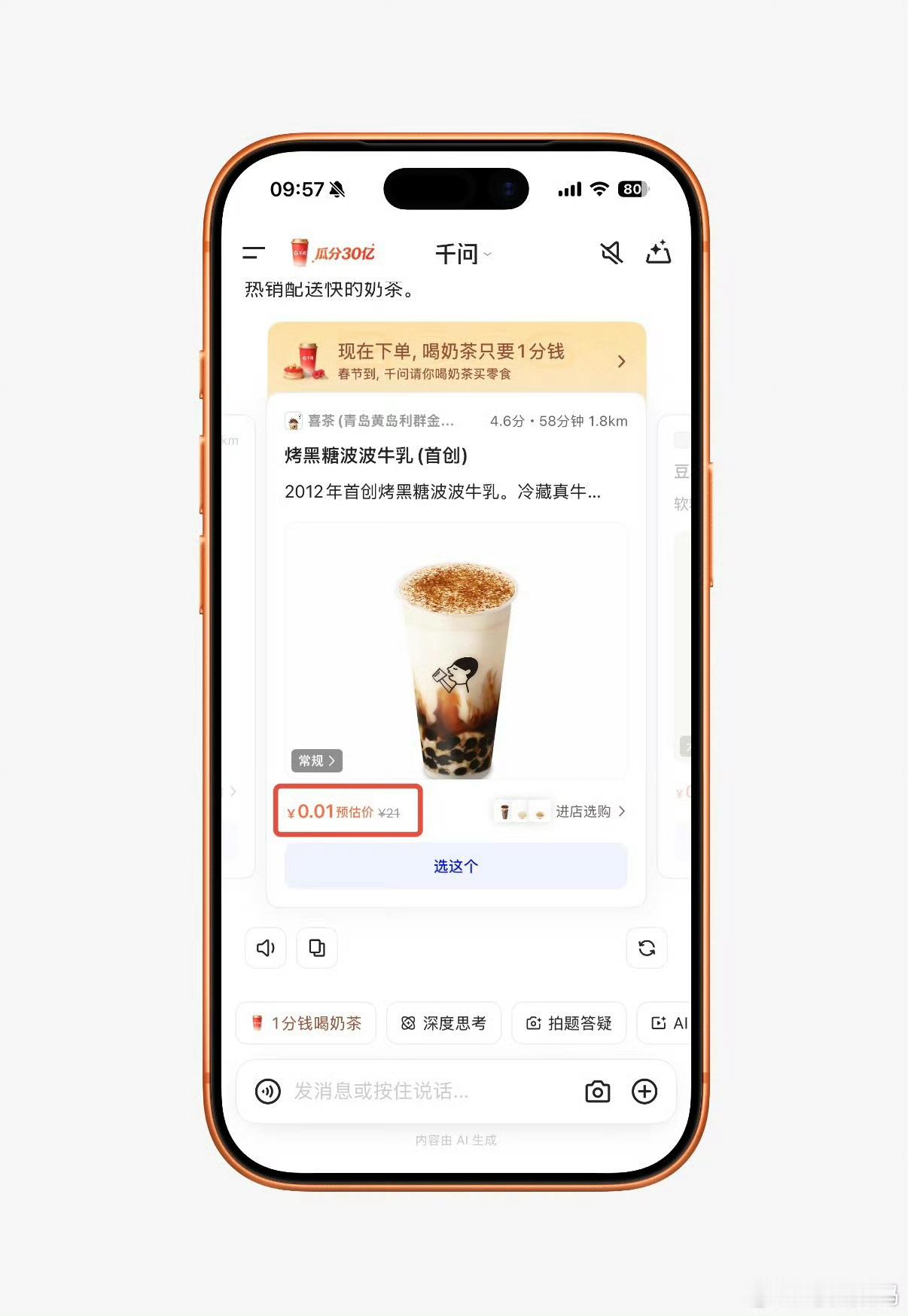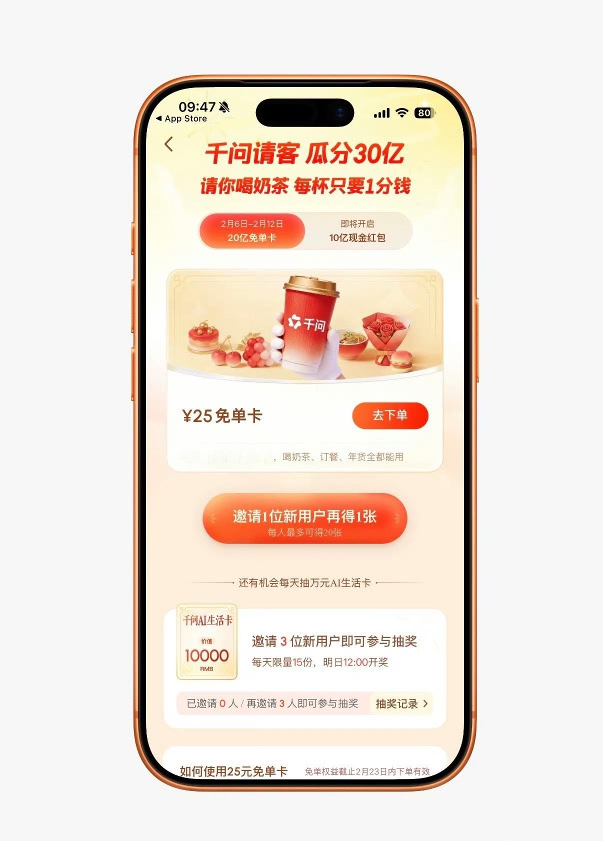 千问也搞活动啦,一分钱喝奶茶,你薅到没?