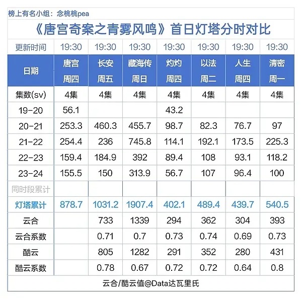 唐宫 首日灯塔878 云合4.8% 850+ 系数接近1酷云 655