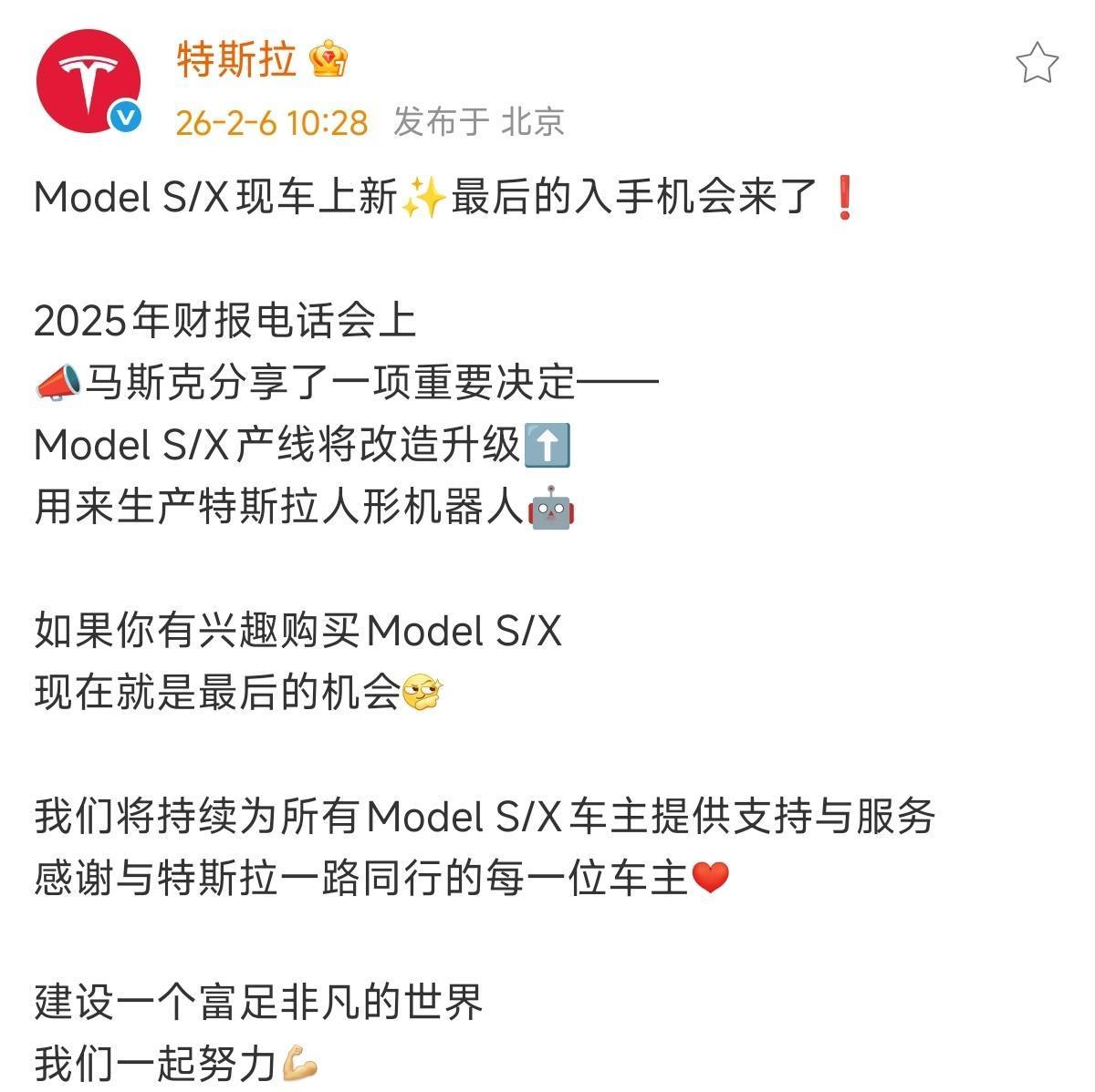 国内Model S和Model X开始「清仓」了。 @特斯拉 说S和X的生产线要用来生产「人形机器人」,之前还有说产Cybercab的[晕]【来自懂车帝车友圈】