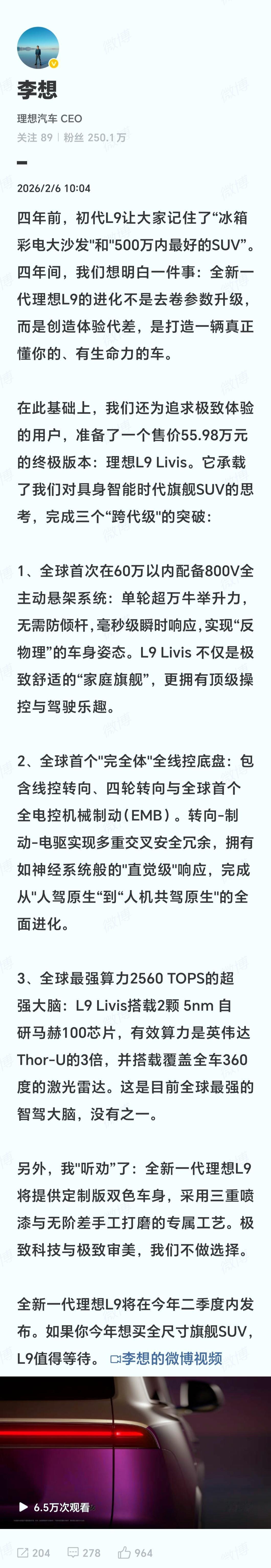 说一个小点,理想引领了整个汽车行业推Ultra版本的概念。 其实这个单词对于普通人来说真的认知吃力,发音也不高级。 但理想做了,其他厂家就跟。 好了,人家这次最高版本叫Livis,还有车企要跟吗,怎么跟。