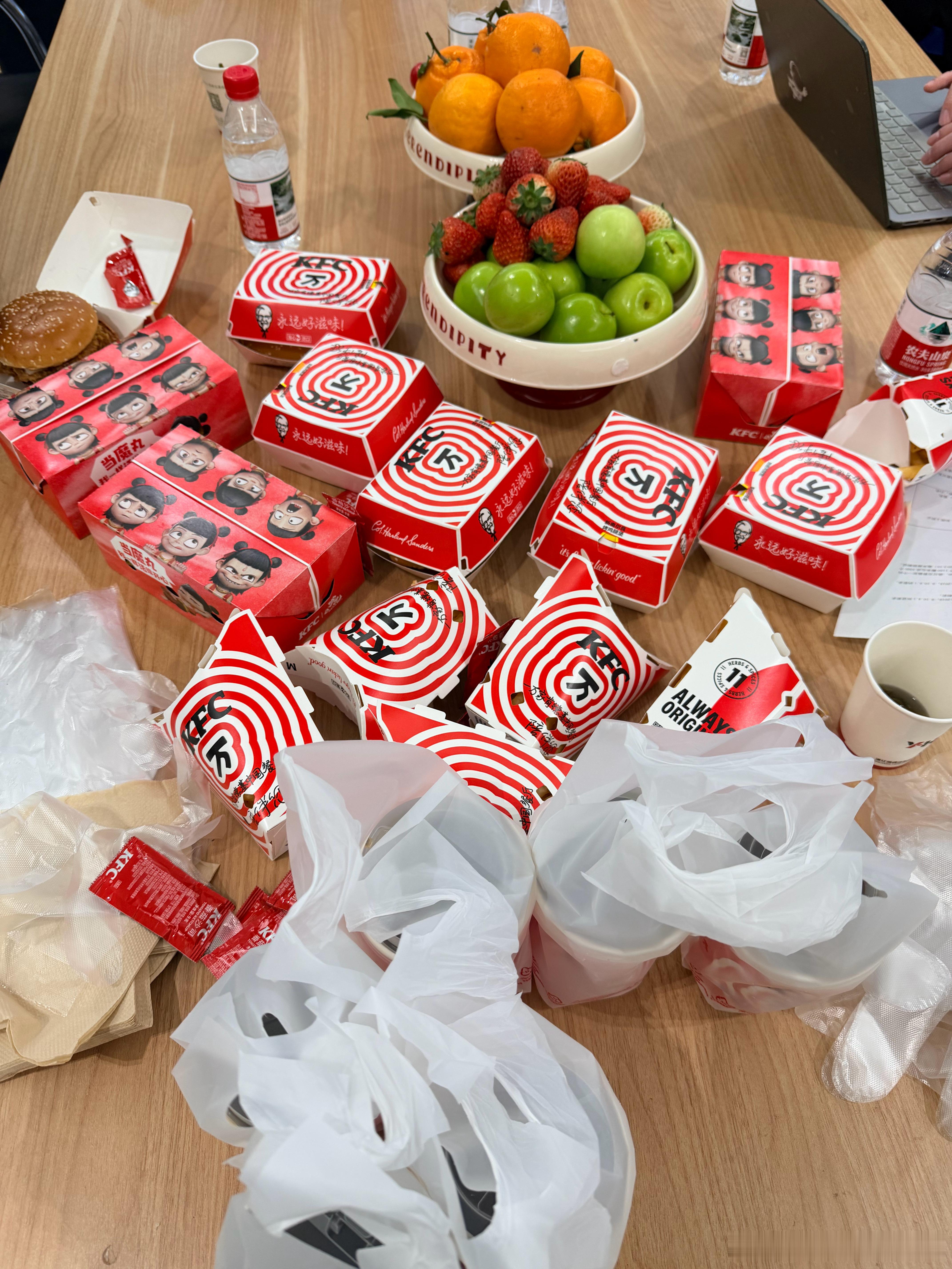 今天开心吃点肯德基吧边开会边吃还要做视频做图片