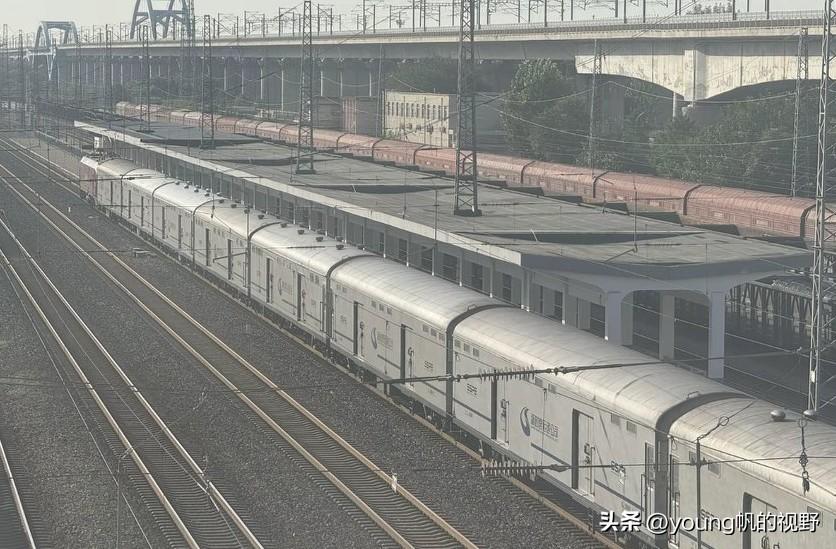 货运列车中的天花板,或者说这是一列另类的客运列车?图中的这列列车,是由25T客车车底为基础而制作的货运行包专列,又叫做新时速列车,因此可以以160公里每小时的高速运行,所以也经常使用和谐电1D等准高速客运机车牵引。比较出名的就是黄村至石龙的X101次行包列车。这些车在排图方面也享受很高等级,经常还会出现不少客运车次让行他们的情况。也正是这些车的运行,实现了行包的快速通达。