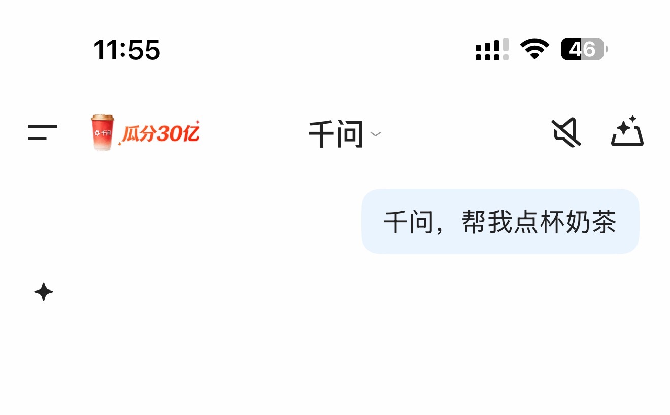 千问 免费奶茶试了一下,我都崩了,不过发其他的可以,就是不能发点奶茶,系统累了么?看来阿里的这个营销有点失败啊,朋友圈好多都是点单失败的,都在骂呢 千问回应免费奶茶活动