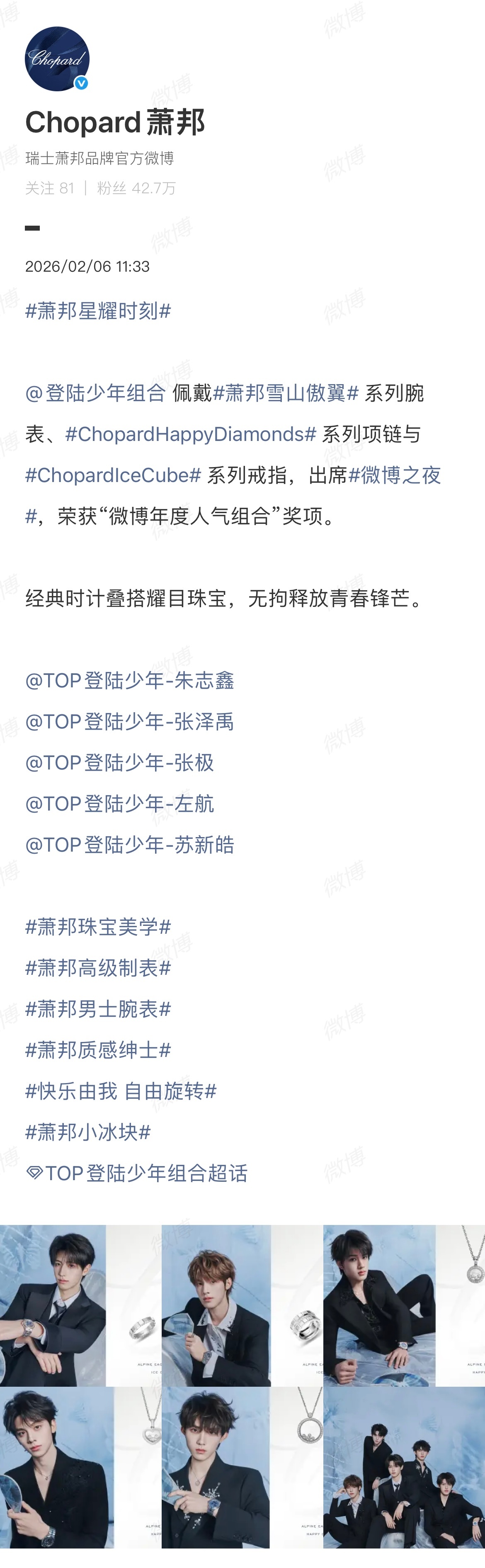 萧邦认领登陆少年 品牌萧邦认领登陆少年朱志鑫 张泽禹 张极 左航 苏新皓