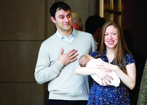 那年,克林顿夫妇抱着襁褓中的女儿切尔西一脸幸福。多年后,切尔西抱着自己的女儿笑容满面。这种生命得到延续的喜悦,是刻在基因里的,代代相传。