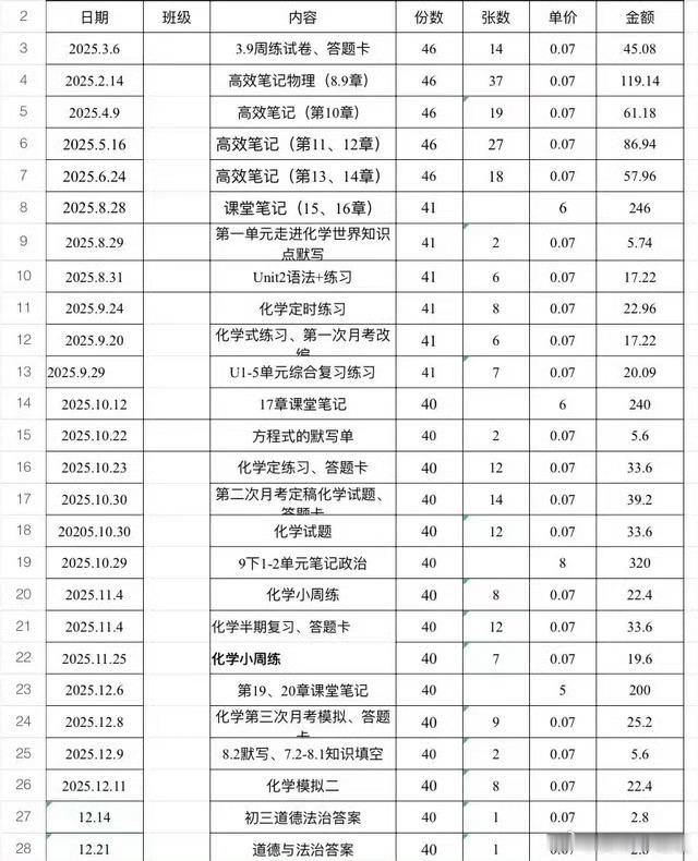 家长举报家委会3年收10多万元班费多少?10万?仔细看了下明细表,虽然每个同学交500,但是表上打印的卷子都是46份,假设老师一份,那班里就是45个学生,一波班费就是22500元10万就是三年收了5次,一个学期不到1次,如果你说因为班费,学生再也没有自己掏钱去复印过卷子,我倒觉得不需要太过质疑,查清楚就好,只是上来就说10万这个数字,确实很唬人