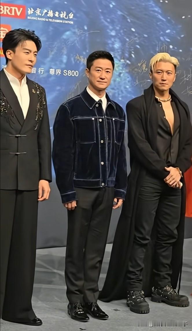 谢霆锋这造型真的看不懂!披风拖在地上像块抹布,还把胸口漏出来,真的有点油腻,旁边吴京也没好到哪去,牛仔衣配西裤,一言难尽,全场唯一的清流竟是吕子乔,182cm的身高撑得起新中式西装,内搭立领衬衫配平驳领外套,得体又精神! 最搞笑的是身高对比:吴京官方175cm,谢霆锋174cm,就差1cm,结果谢霆锋踩了双至少5cm的厚底增高鞋,站在吴京旁边居然还矮了半头,虚报得也太离谱了吧![捂脸]