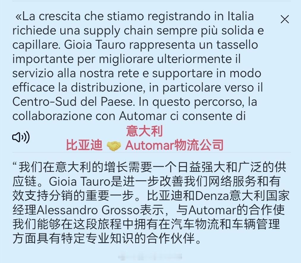 比亚迪 🤝 意大利Automar物流公司,双方就比亚迪汽车在意大利境内(中南部地区)物流服务达成战略合作!