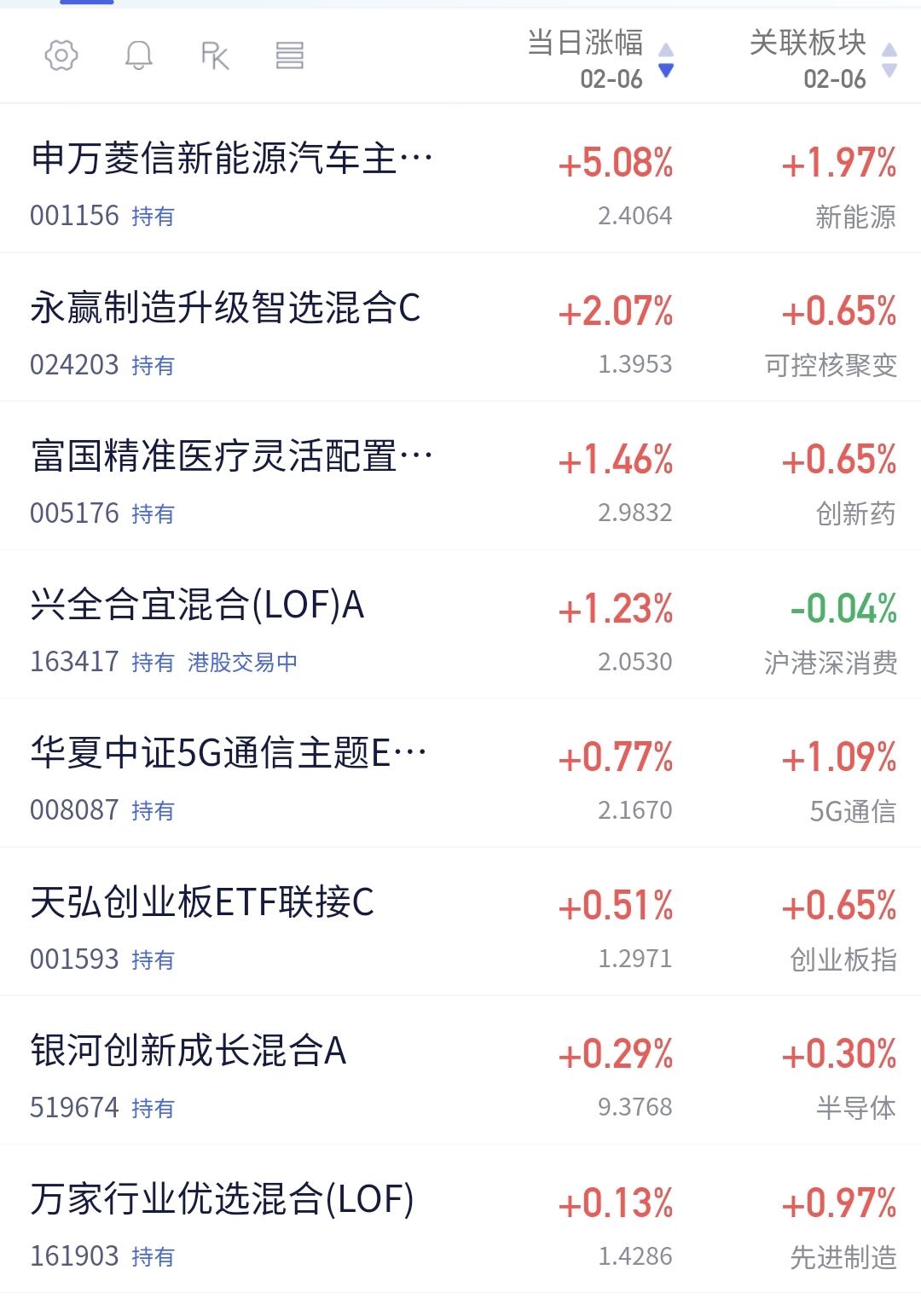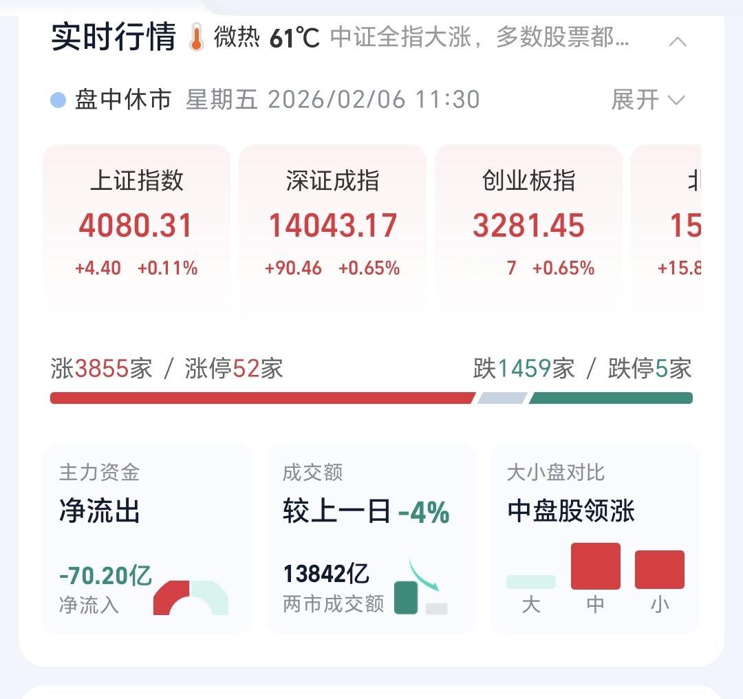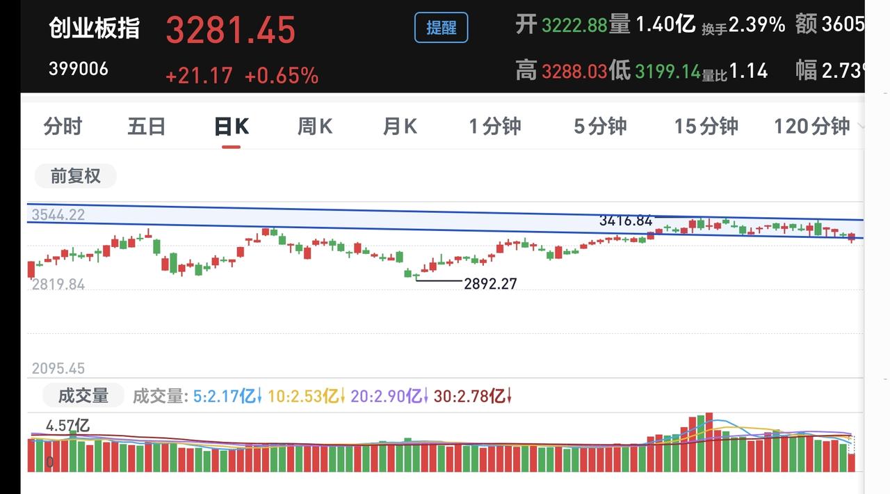 基金:市场全线上涨,我只是喝茶看戏 市场大幅度低开以后高走,中午收盘的时候三大指数都是上涨,创业板指上涨了0.65%,收于3281点,上证指数上涨了0.11%,收于4080点。 今天能够大幅度低开高走的主要原因就是黄色线又是高高在上,重新站上了五天线,两市累计成交13842亿,相比于昨天同期缩量了4%,市场上涨3800多家,下跌1400多家,涨停52家,跌停5家,主力资金净流出70亿。 市场上涨幅度最大的三个板块是:机器人板块,储能板块,化工板块,下跌幅度最大的三个板块是:黄金板块,白酒板块,海外医药板块。 最近就是一个板块轮动的震荡走势,方向上并没有明确的选择,没有选择向上,也没有选择向下,板块轮动的速度是非常快的,盘中就在进行着轮动,板块轮动的结果就是没有持续性的上涨板块,在市场表现上就是震荡走势。 成交量萎缩的情况之下,只能是板块轮动,因为,所有的板块方向一致的时候,需要有成交量的支持,板块轮动的资金其实就是拆东墙补西墙,前两天从科技板块出来的资金,去了白酒消费板块,今天从白酒消费类板块出来的资金,去了科技类板块,这就是板块的轮动,这就是因为资金在板块之间切换,形成了板块的轮动。 持有的基金中,估值上涨幅度最大的三个板块是:新能源汽车板块,可控核聚变板块,创新药板块,下跌幅度最大的三个板块是:白酒板块,AI应用板块,军工板块,估值整体上涨了2321元,见下面的截图。 所有的基金中,今天上涨13752家,下跌5518家,上涨幅度超过5%的有4家,下跌幅度超过5%的有2家。 看下面的截图13,这是创业板指日K线图,今天的上涨使得指数又回到了日线级,短期下跌通道内,今天的上涨并没有能够突破这个下跌通道的上轨线,也就是说,今天的上涨并没有能够改变日线级别短期的下跌趋势,对于市场的后市,在突破日线级别下跌通道上轨线之前,都需要继续保持谨慎。 看下面的截图14,这是化工板块日K线图,前段时间下跌跌破了日线级别上涨通道的下轨线,现在是处于有效破位当中,今天的上涨线暂时作为反弹来看。 看下面的截图15,这是化工板块周K线图,现在的位置处于这个周线级别上涨通道当中,长线持有的人可以继续持有,除非下跌跌破这个上涨通道的下轨线,才可以考虑要不要止盈出来观望。 震荡市场的过程当中,最好的应对就是多看少动,千万不可以去追涨杀跌,因为,市场板块的轮动非常快,喝茶看戏就可以了。 我不知道用什么办法,大家才能帮忙点赞评论转发和分享支持,有没有人能够帮忙想一个办法,谢谢大家!