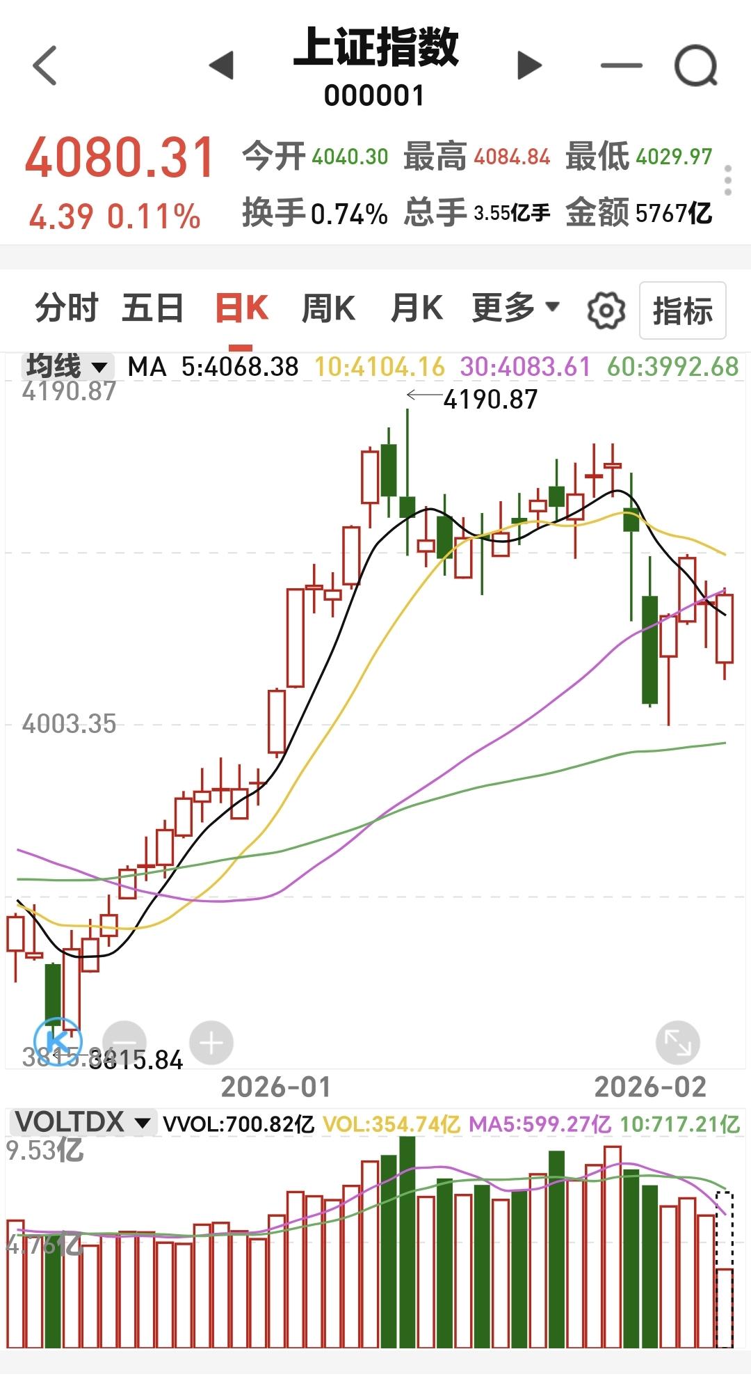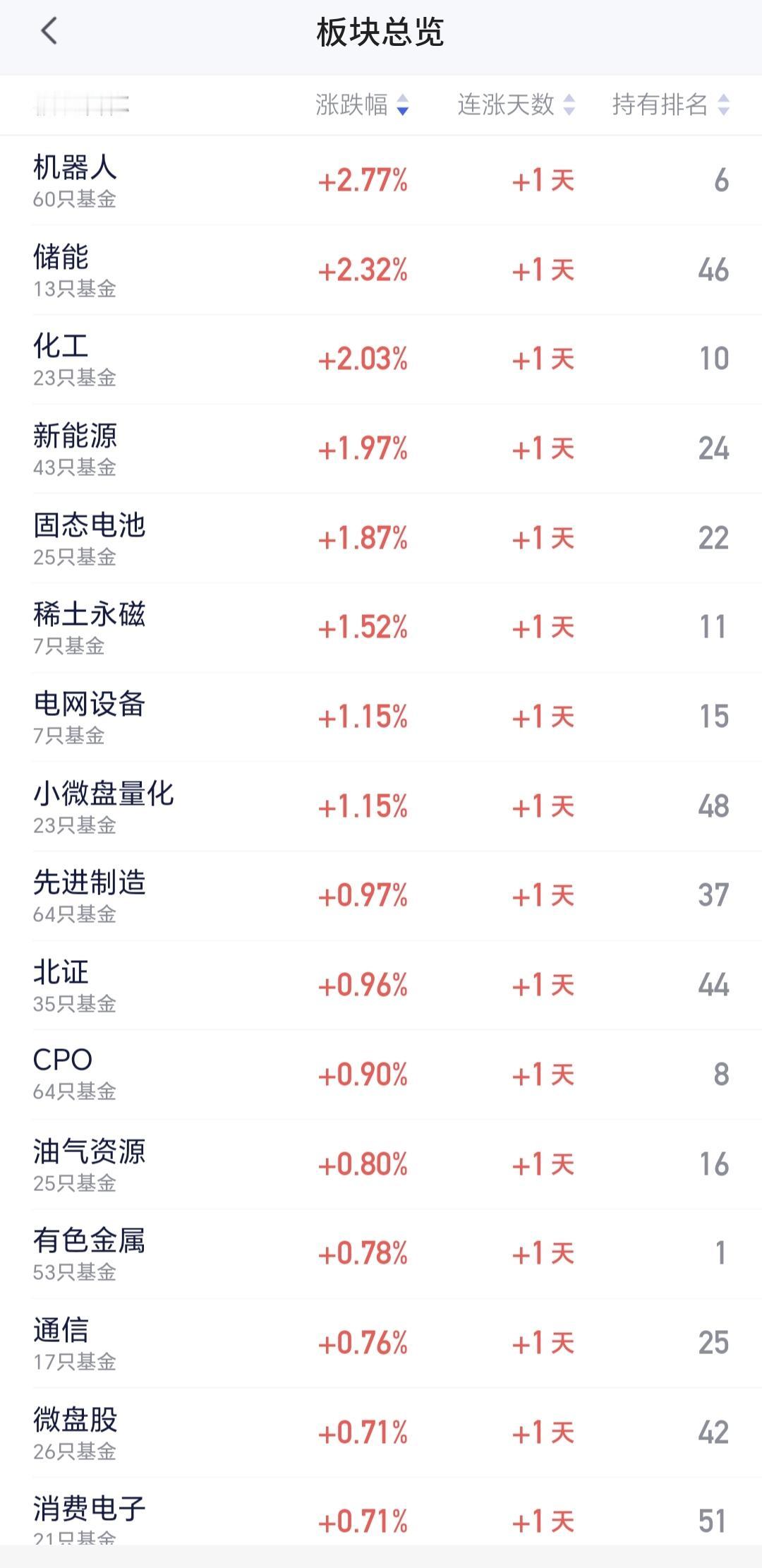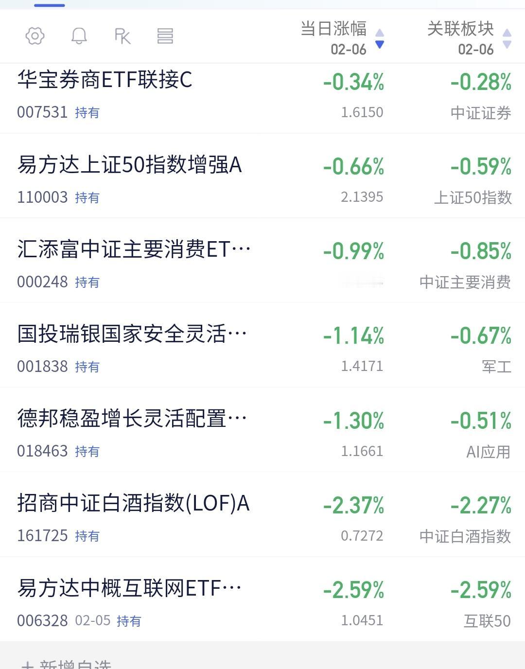 基金:市场全线上涨,我只是喝茶看戏 市场大幅度低开以后高走,中午收盘的时候三大指数都是上涨,创业板指上涨了0.65%,收于3281点,上证指数上涨了0.11%,收于4080点。 今天能够大幅度低开高走的主要原因就是黄色线又是高高在上,重新站上了五天线,两市累计成交13842亿,相比于昨天同期缩量了4%,市场上涨3800多家,下跌1400多家,涨停52家,跌停5家,主力资金净流出70亿。 市场上涨幅度最大的三个板块是:机器人板块,储能板块,化工板块,下跌幅度最大的三个板块是:黄金板块,白酒板块,海外医药板块。 最近就是一个板块轮动的震荡走势,方向上并没有明确的选择,没有选择向上,也没有选择向下,板块轮动的速度是非常快的,盘中就在进行着轮动,板块轮动的结果就是没有持续性的上涨板块,在市场表现上就是震荡走势。 成交量萎缩的情况之下,只能是板块轮动,因为,所有的板块方向一致的时候,需要有成交量的支持,板块轮动的资金其实就是拆东墙补西墙,前两天从科技板块出来的资金,去了白酒消费板块,今天从白酒消费类板块出来的资金,去了科技类板块,这就是板块的轮动,这就是因为资金在板块之间切换,形成了板块的轮动。 持有的基金中,估值上涨幅度最大的三个板块是:新能源汽车板块,可控核聚变板块,创新药板块,下跌幅度最大的三个板块是:白酒板块,AI应用板块,军工板块,估值整体上涨了2321元,见下面的截图。 所有的基金中,今天上涨13752家,下跌5518家,上涨幅度超过5%的有4家,下跌幅度超过5%的有2家。 看下面的截图13,这是创业板指日K线图,今天的上涨使得指数又回到了日线级,短期下跌通道内,今天的上涨并没有能够突破这个下跌通道的上轨线,也就是说,今天的上涨并没有能够改变日线级别短期的下跌趋势,对于市场的后市,在突破日线级别下跌通道上轨线之前,都需要继续保持谨慎。 看下面的截图14,这是化工板块日K线图,前段时间下跌跌破了日线级别上涨通道的下轨线,现在是处于有效破位当中,今天的上涨线暂时作为反弹来看。 看下面的截图15,这是化工板块周K线图,现在的位置处于这个周线级别上涨通道当中,长线持有的人可以继续持有,除非下跌跌破这个上涨通道的下轨线,才可以考虑要不要止盈出来观望。 震荡市场的过程当中,最好的应对就是多看少动,千万不可以去追涨杀跌,因为,市场板块的轮动非常快,喝茶看戏就可以了。 我不知道用什么办法,大家才能帮忙点赞评论转发和分享支持,有没有人能够帮忙想一个办法,谢谢大家!