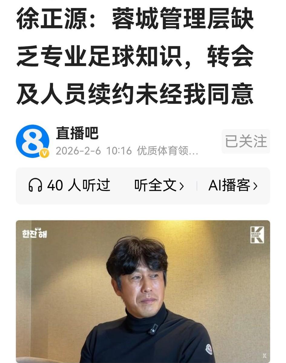真没想到徐正源挺嘴碎,在蓉城开启新赛季的关键时刻,他不是对心爱的球队送上祝福,而是在翻俱乐部的老黄历。 在接受韩媒采访时说,蓉城5年3换管理层,很不专业,沟通非常吃力;澄清引援权并非归他所有,夏窗人员转会租借都未经他同意;最恼火的是多次换队医,让伤病恢复很费力;他本想继续执教蓉城,可与俱乐部的重大理念分歧无解……其实这些情况韩媒和国内媒体早有报道,再重复就没啥意义。 老徐给蓉城足球留下了很多美好回忆,也得到俱乐部和球迷极高评价和诚挚感谢。但历史早翻篇了,他再对这些问题碎碎念,尤其对投资人进行措辞严厉的指责,其形象反而会打折,对他重返中超不利。